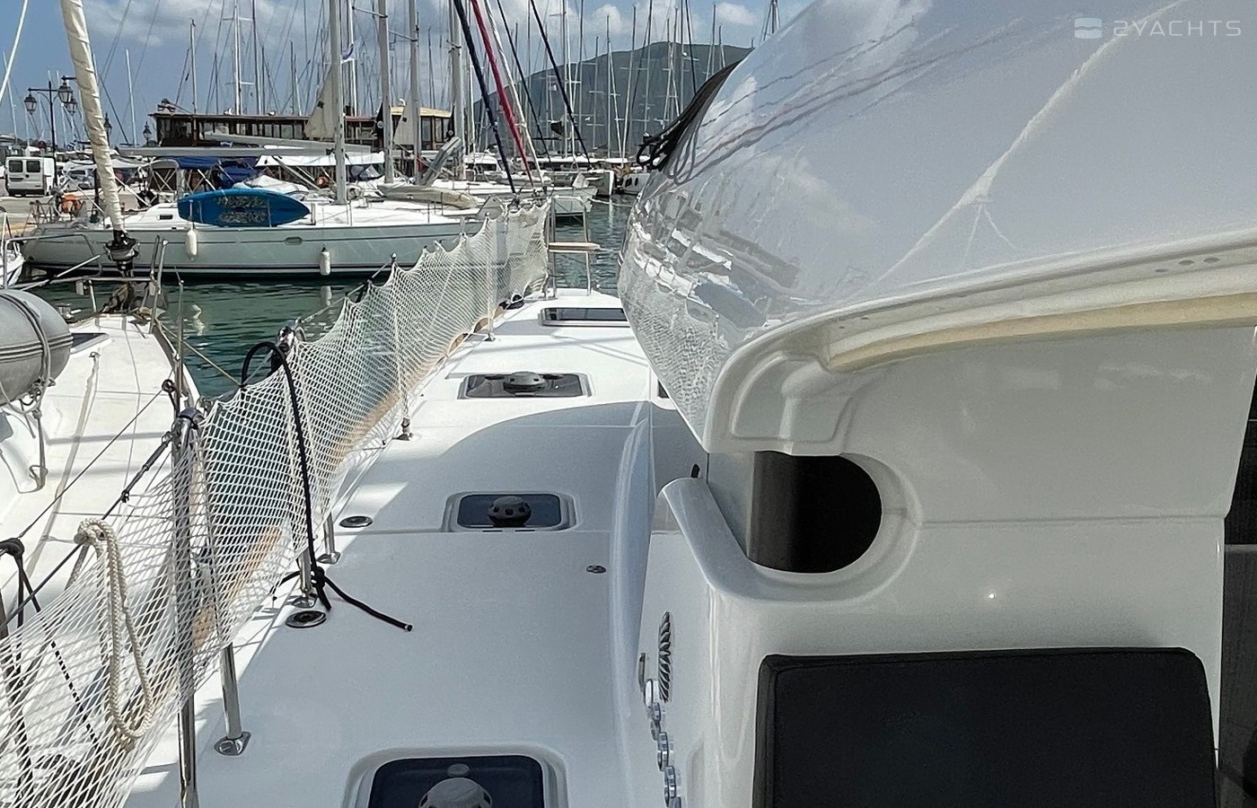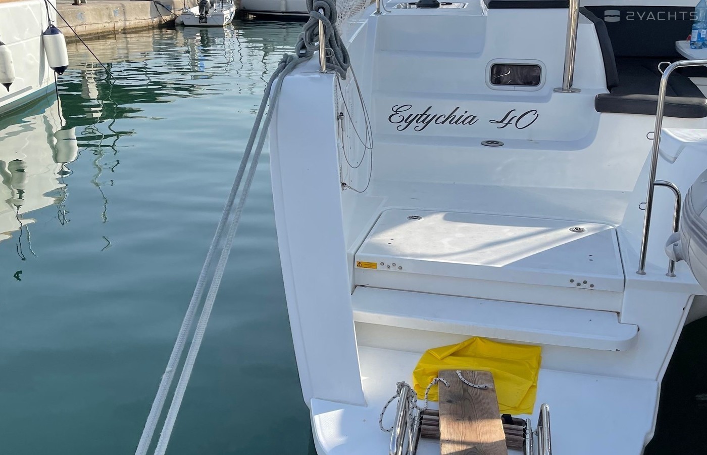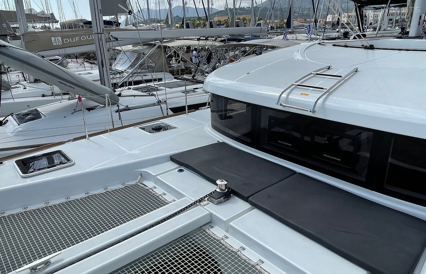 6-cabin catamaran Lagoon 40 - Eftychia was built in 2022, and it is docked in Lefkas Marina, Greece.