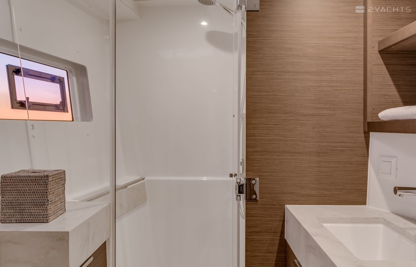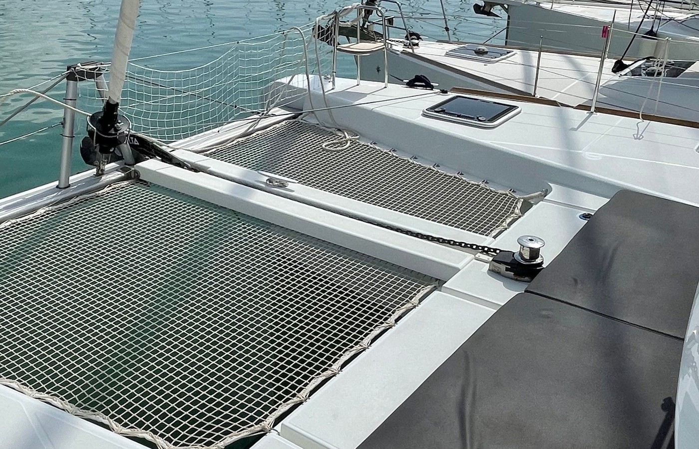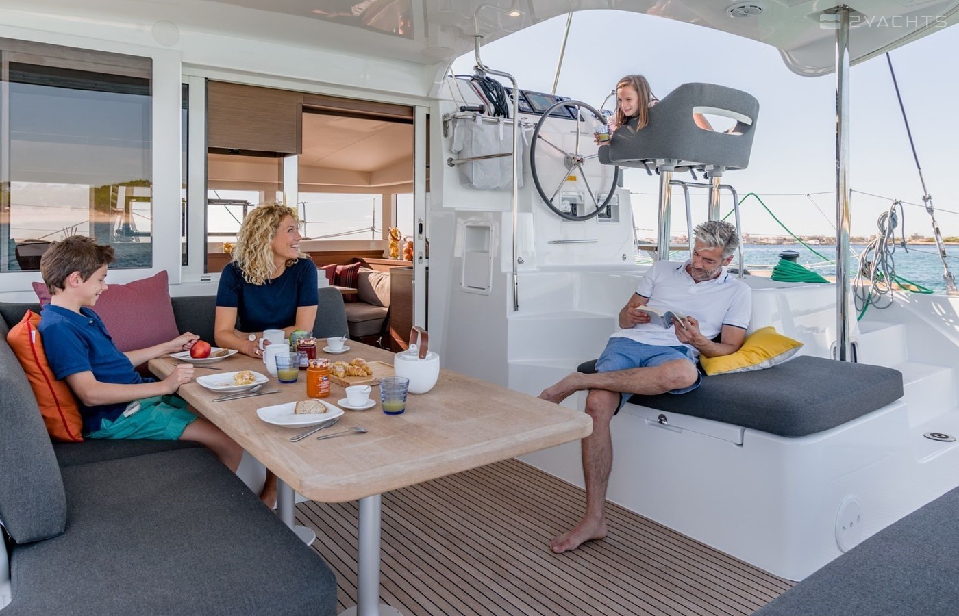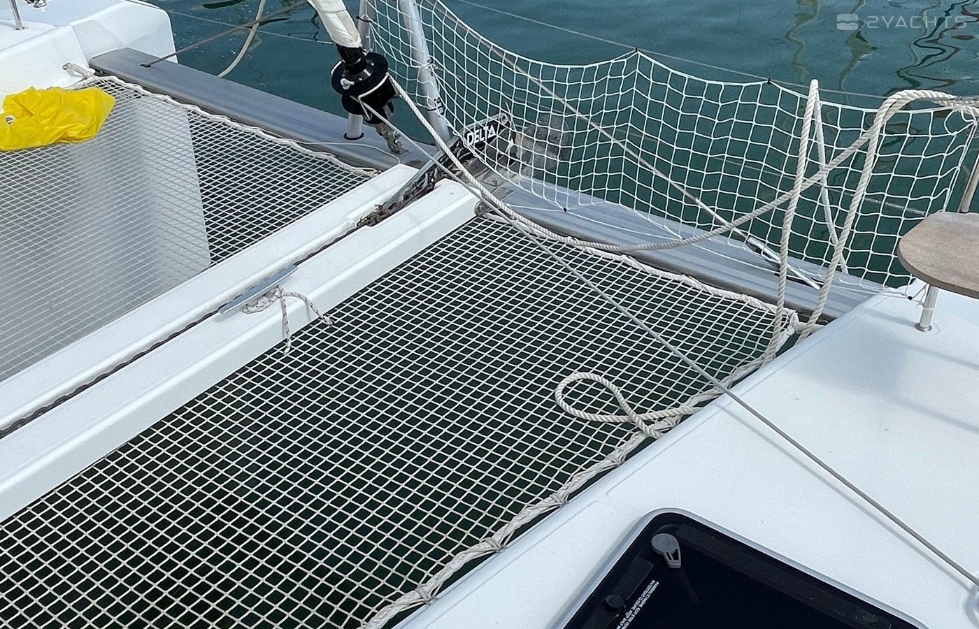6-cabin catamaran Lagoon 40 - Eftychia was built in 2022, and it is docked in Lefkas Marina, Greece.