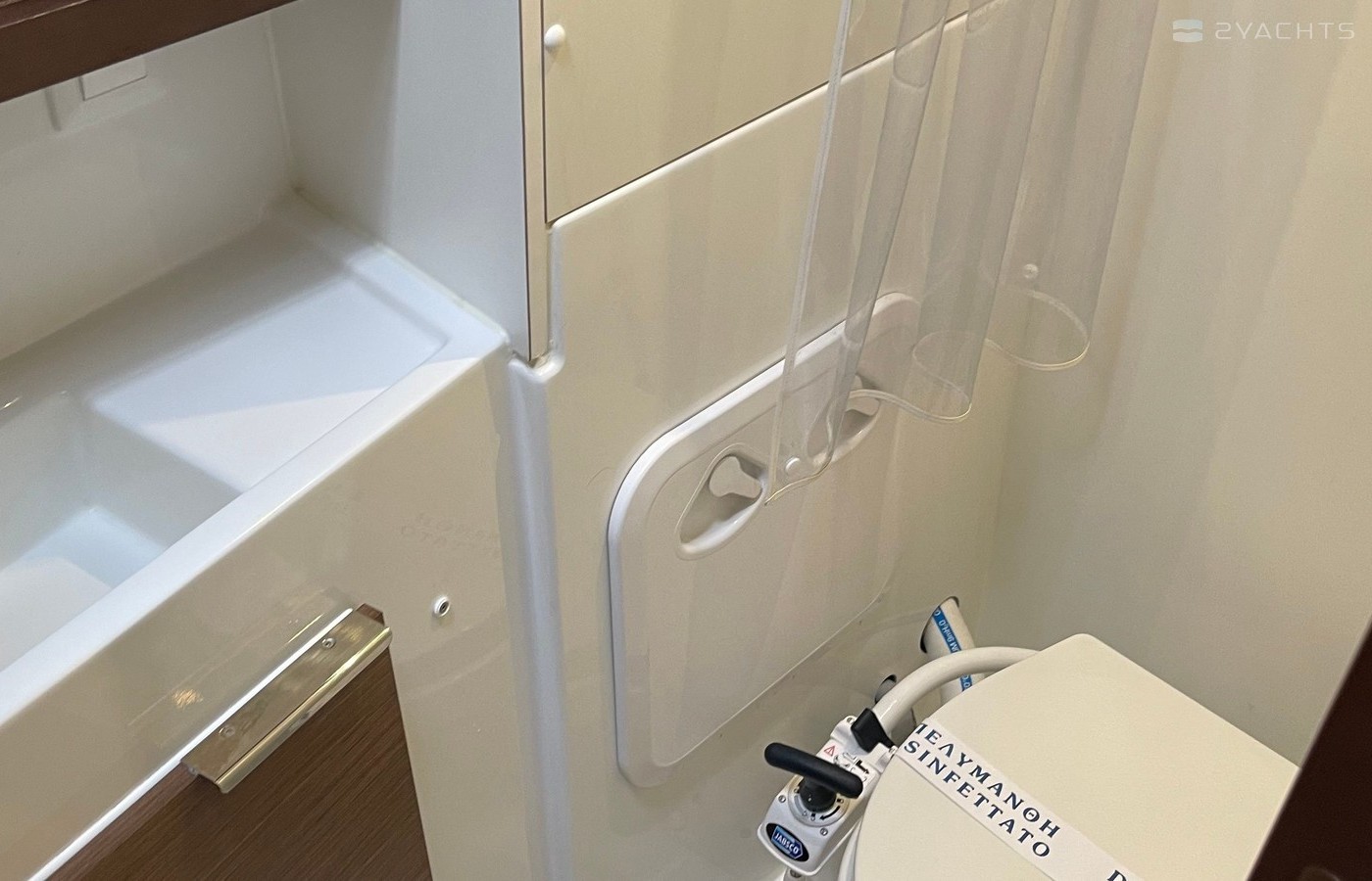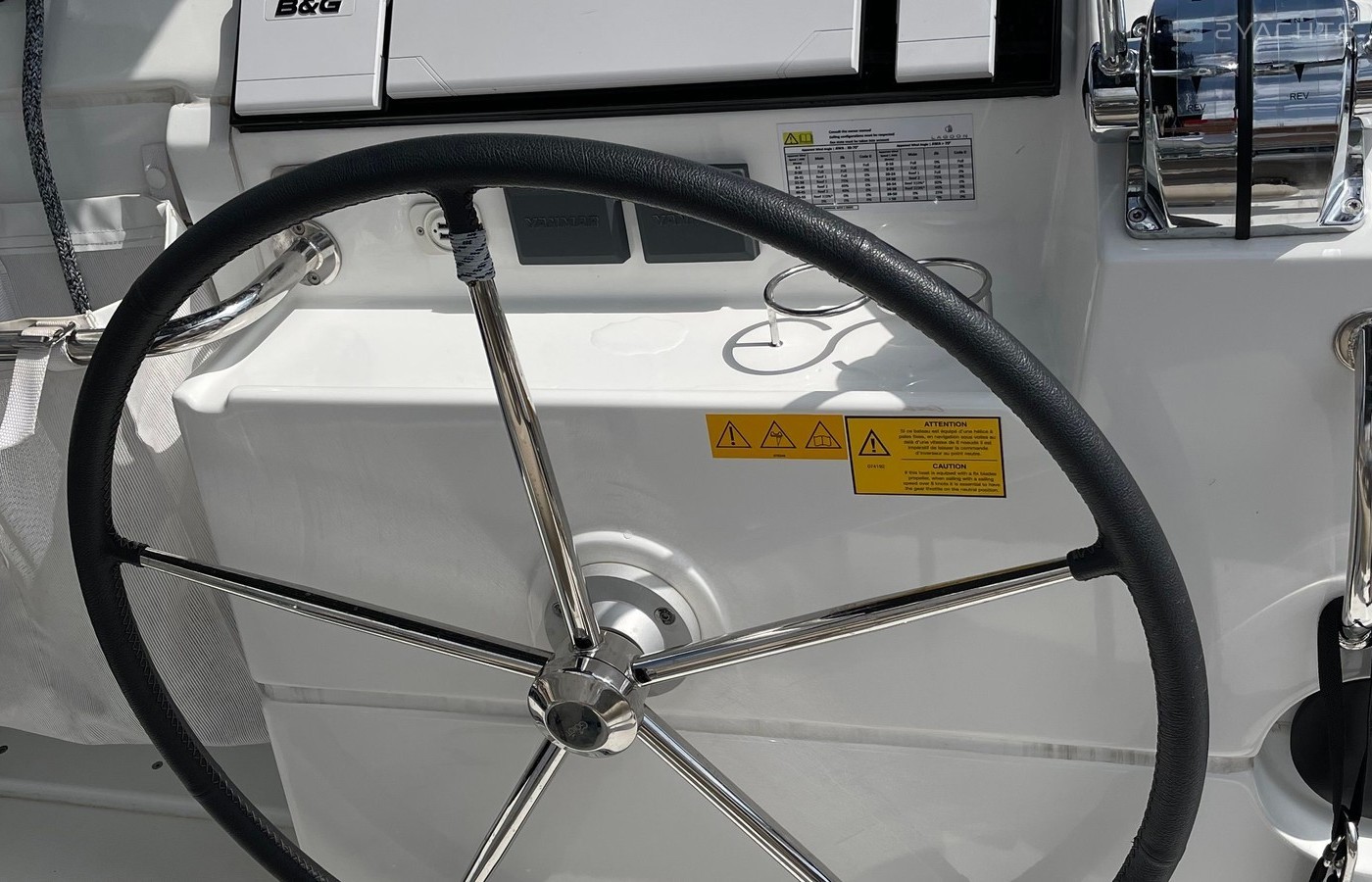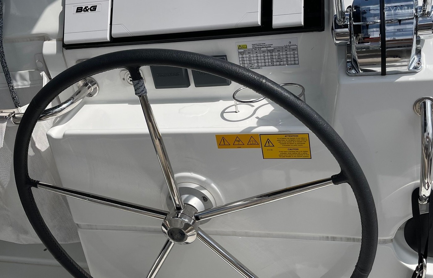 Boat equipment features classical mainsail, bimini and outside gps plotter. It also boasts an an audio system, outside speakers and inside speakers. The fully-equipped galley includes an oven, cooker, sink and kitchen utensils.