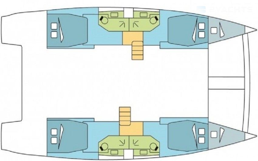 Boat equipment features classical mainsail, bimini and outside gps plotter. It also boasts an air conditioning, an audio system, outside speakers, flybridge and inside speakers. The fully-equipped galley includes a microwave, freezer, coffee machine, oven and cooker.