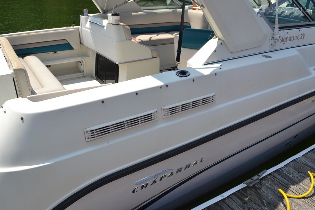 She has twin 350 mercruiser motors, twin hydraulic external steering, hydraulic twin tabs, fuel injection, bimini top, bridge enclosure, cockpit cover, side canvas, battery charger –triple 10 amp, and Remote control spotlight and remote operated anchor. Owner add-on: Elite-12Ti2 US Inland, Active Imaging 3-in-01 Fish Finder. Has a widescreen display that delivers powerful sonar and navigation technology including Lowrang CHIRP sonar support for Active Imaging and FishReveal, plus built-in high-detail US Inland charts and Genesis Live onscreen mapping! Upgradeable–a Fisherman’s dream!