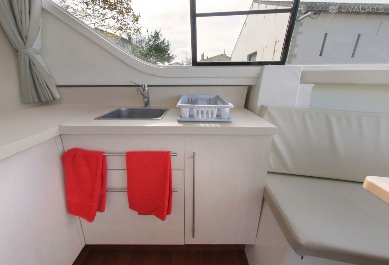 A well-equipped galley with oven, cooker, sink and kitchen utensils is prepared to facilitate cooking. There is also a bbq, microwave and freezer on board.
