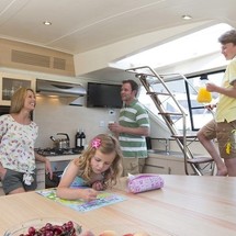 A well-equipped galley with oven, cooker, sink and kitchen utensils is prepared to facilitate cooking. There is also a bbq, microwave and freezer on board.