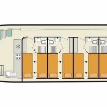 The living area of this houseboat consists of 4 cabins and accommodates 9 people. A shower is at the guests' disposal and there are 4 toilets on board.