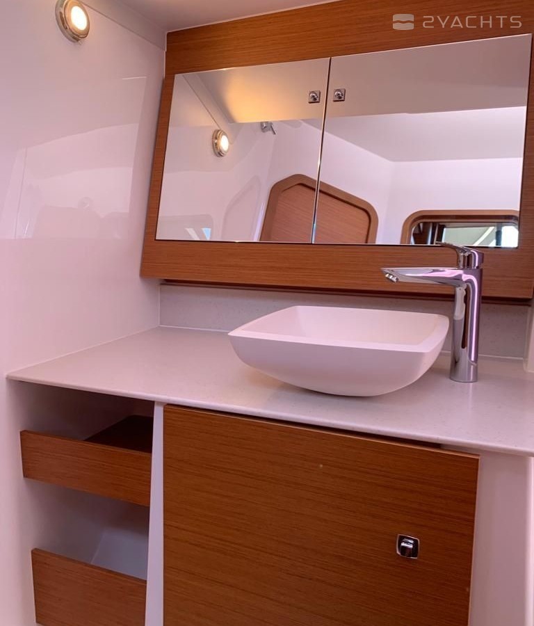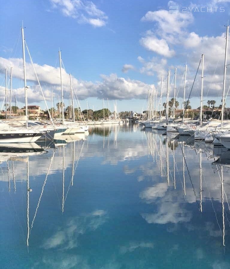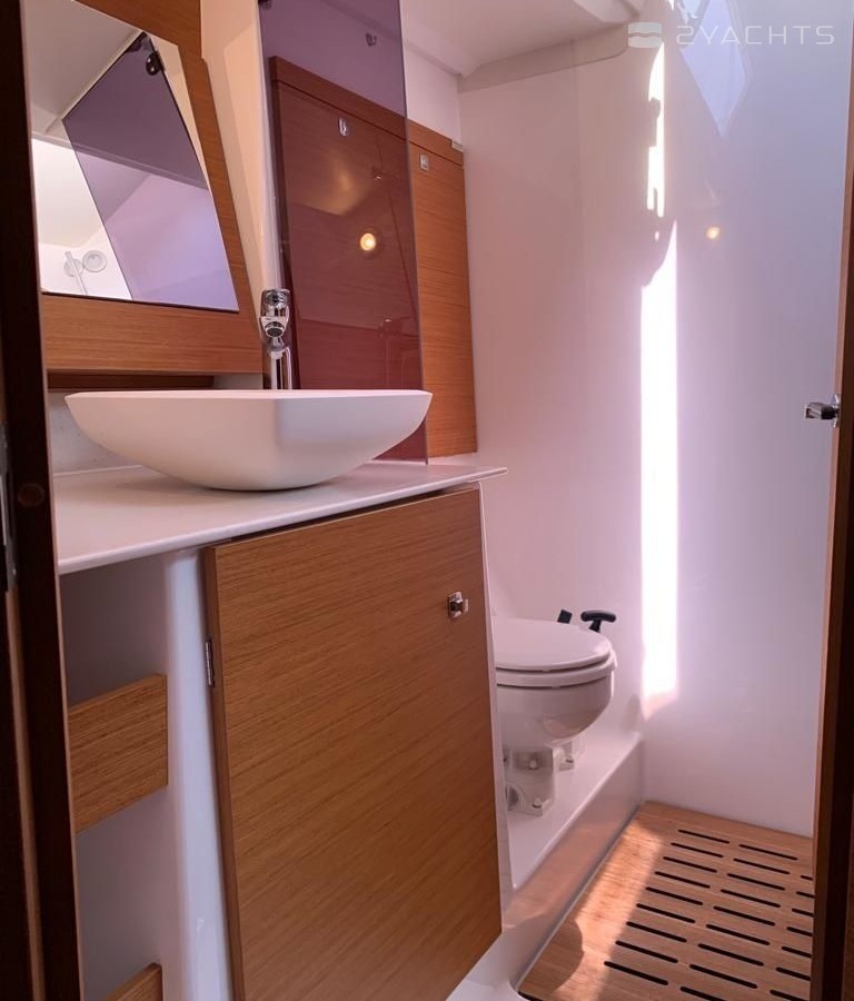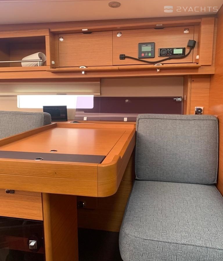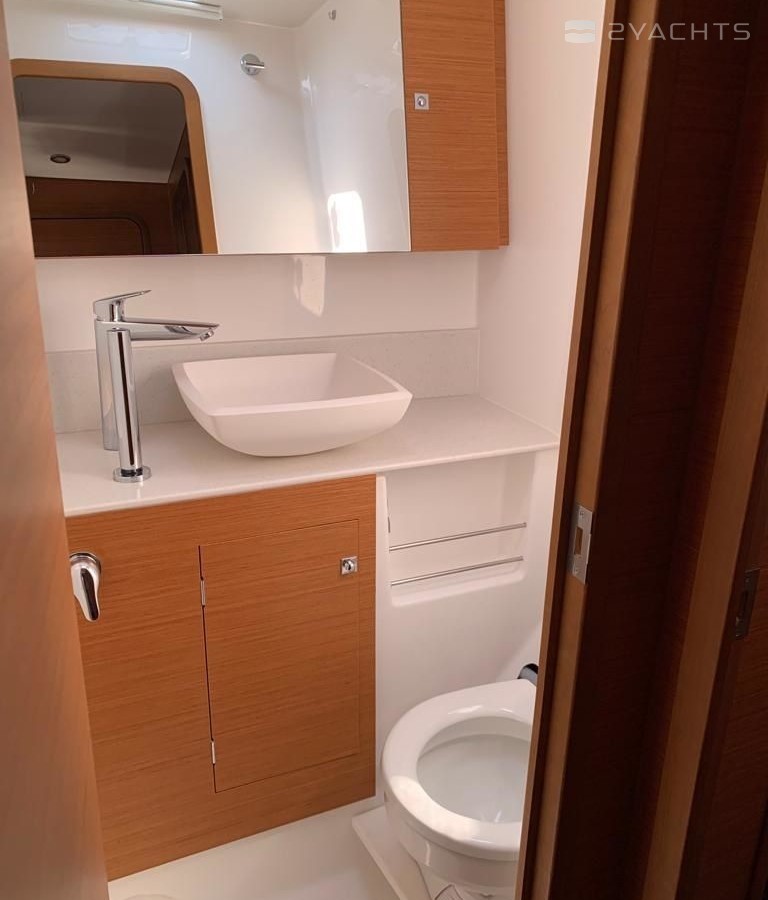 Boat equipment features classical mainsail, generator, bimini and bow thruster. It also boasts a heating, air conditioning, an audio system, outside speakers and inside speakers. The fully-equipped galley includes an oven, cooker, sink and kitchen utensils.