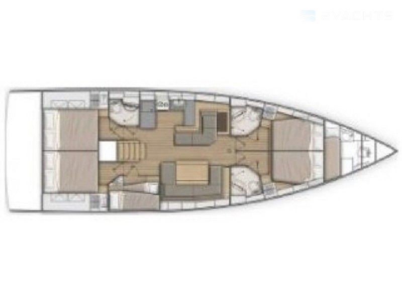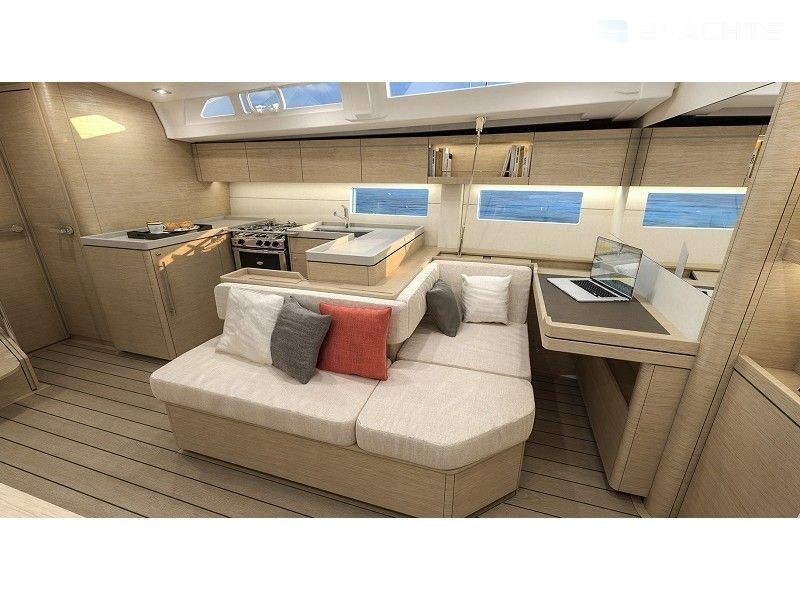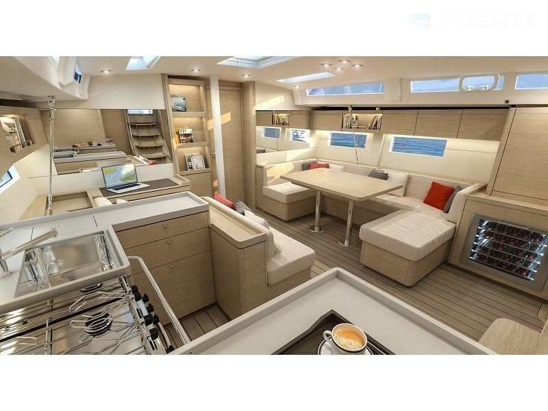Boat equipment features rolling mainsail, salon gps plotter, bimini and bow thruster. It also boasts an an audio system, outside speakers and inside speakers. The fully-equipped galley includes a microwave, freezer, oven, cooker and sink.