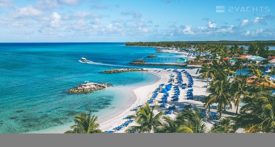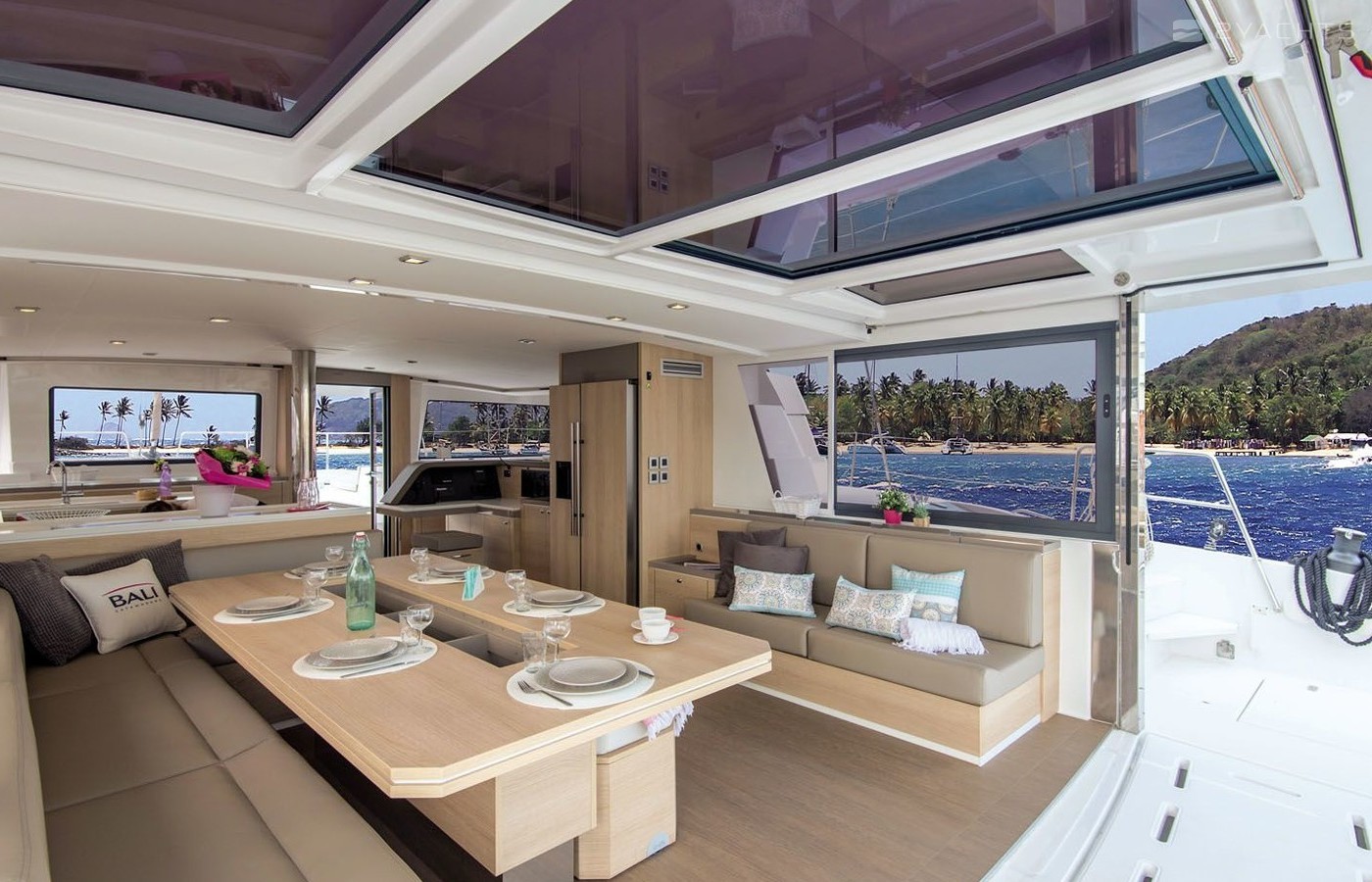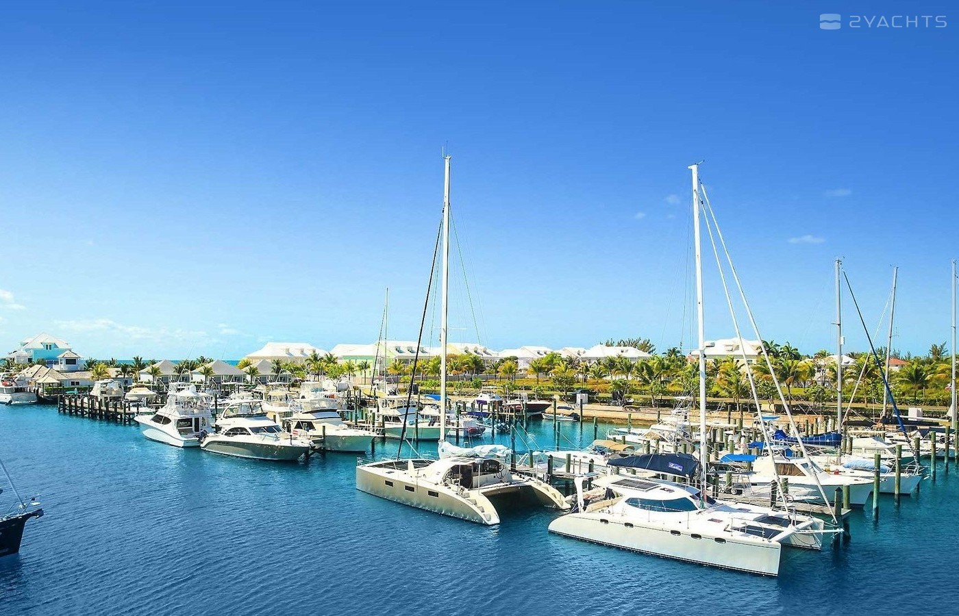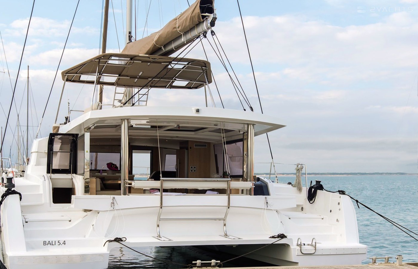 8-cabin catamaran Bali 5.4 - Blue Jay was built in 2021, and it is docked in Palm Cay Marina, The Bahamas.