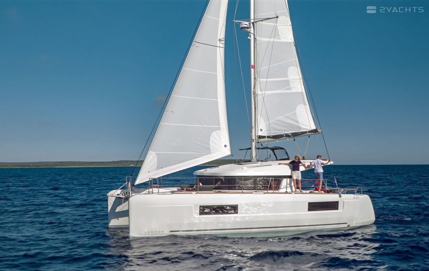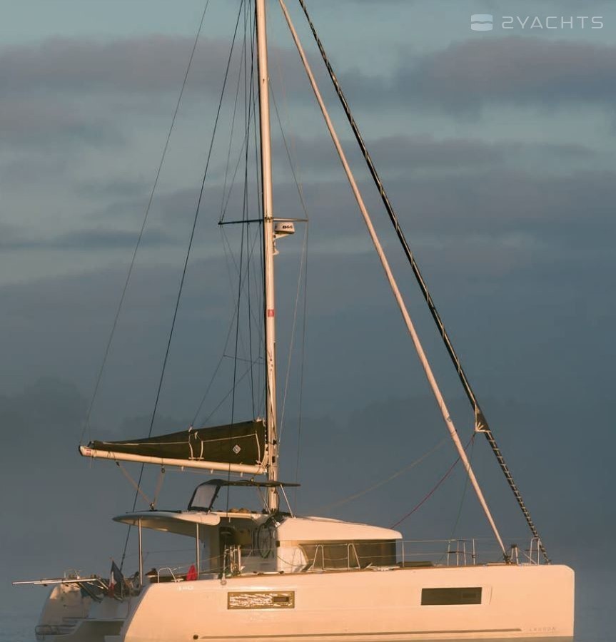 6-cabin catamaran Lagoon 40 - Discovery 2 was built in 2022, and it is docked in Marina Gouvia, Greece.