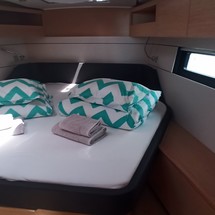 Boat equipment features classical mainsail, electric winches, bbq, bimini and bow thruster. It also boasts a flat screen tv, an audio system, outside speakers and inside speakers. The fully-equipped galley includes a microwave, oven, cooker, sink and kitchen utensils.