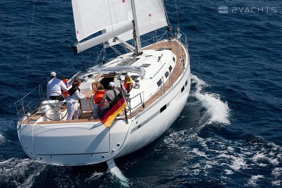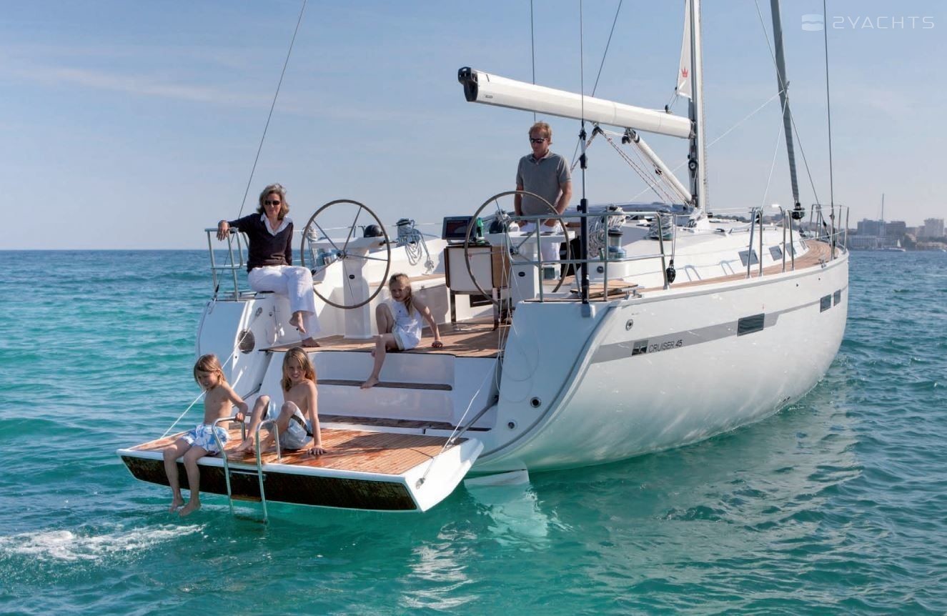 4-cabin sailing yacht Bavaria Cruiser 45 - Lady White was built in 2010, and it is docked in Poseidon Marina, Italy.