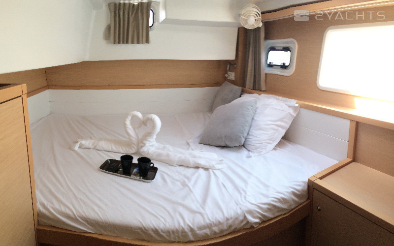 4-cabin catamaran Lagoon 39 - Sunshine was built in 2013, and it is docked in Propriano Marina, France.