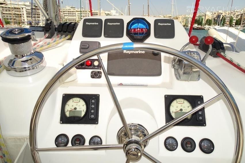 Boat equipment features classical mainsail, solar panels, generator, bimini and outside gps plotter. It also boasts a heating, air conditioning, an audio system, outside speakers and inside speakers. The fully-equipped galley includes a freezer, oven, cooker, sink and kitchen utensils.
