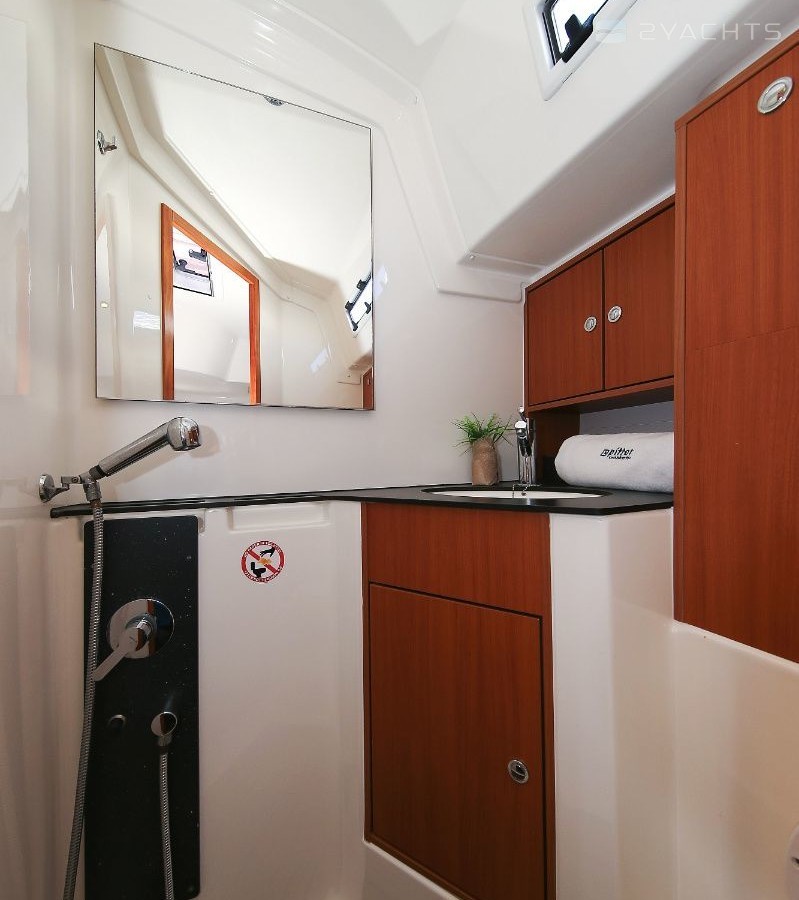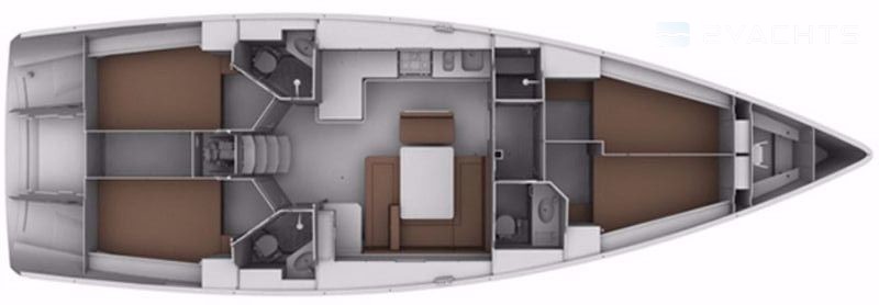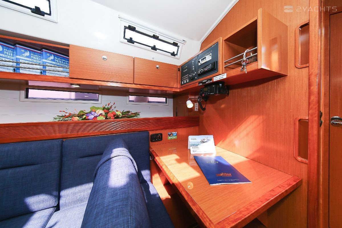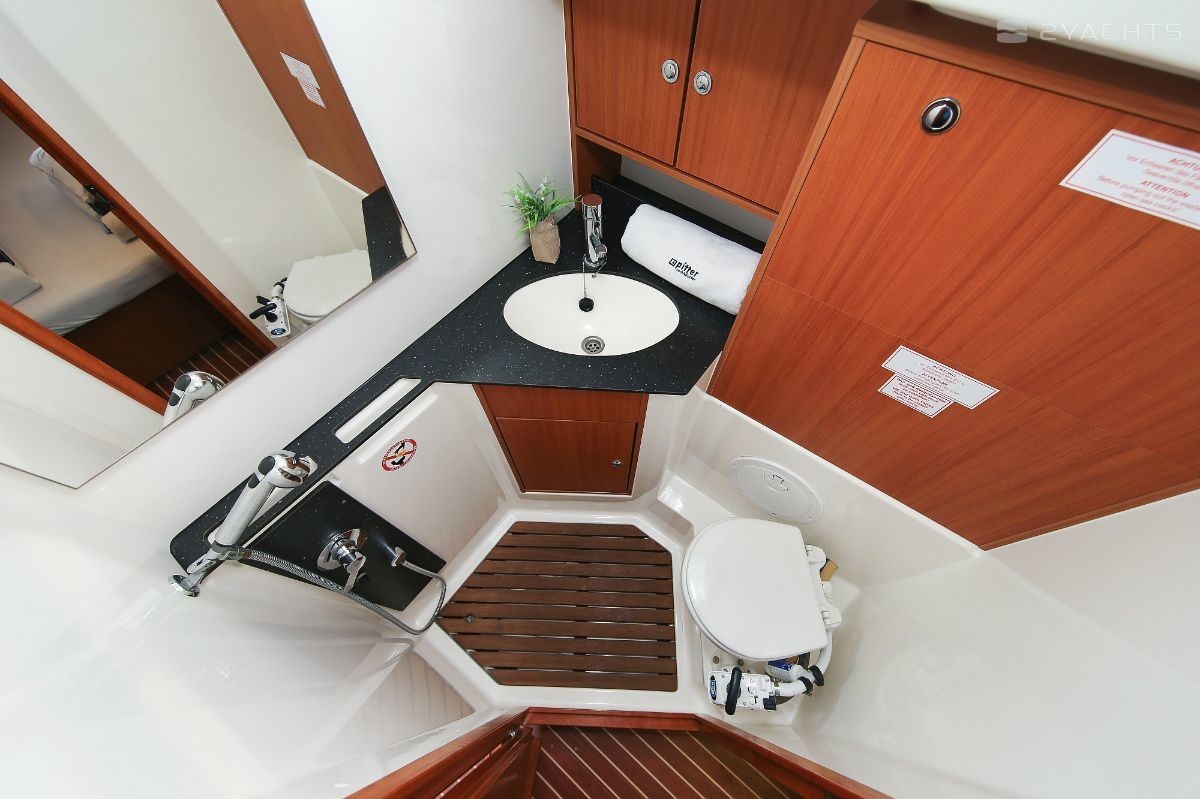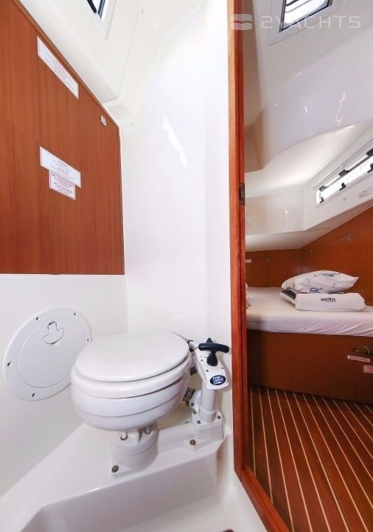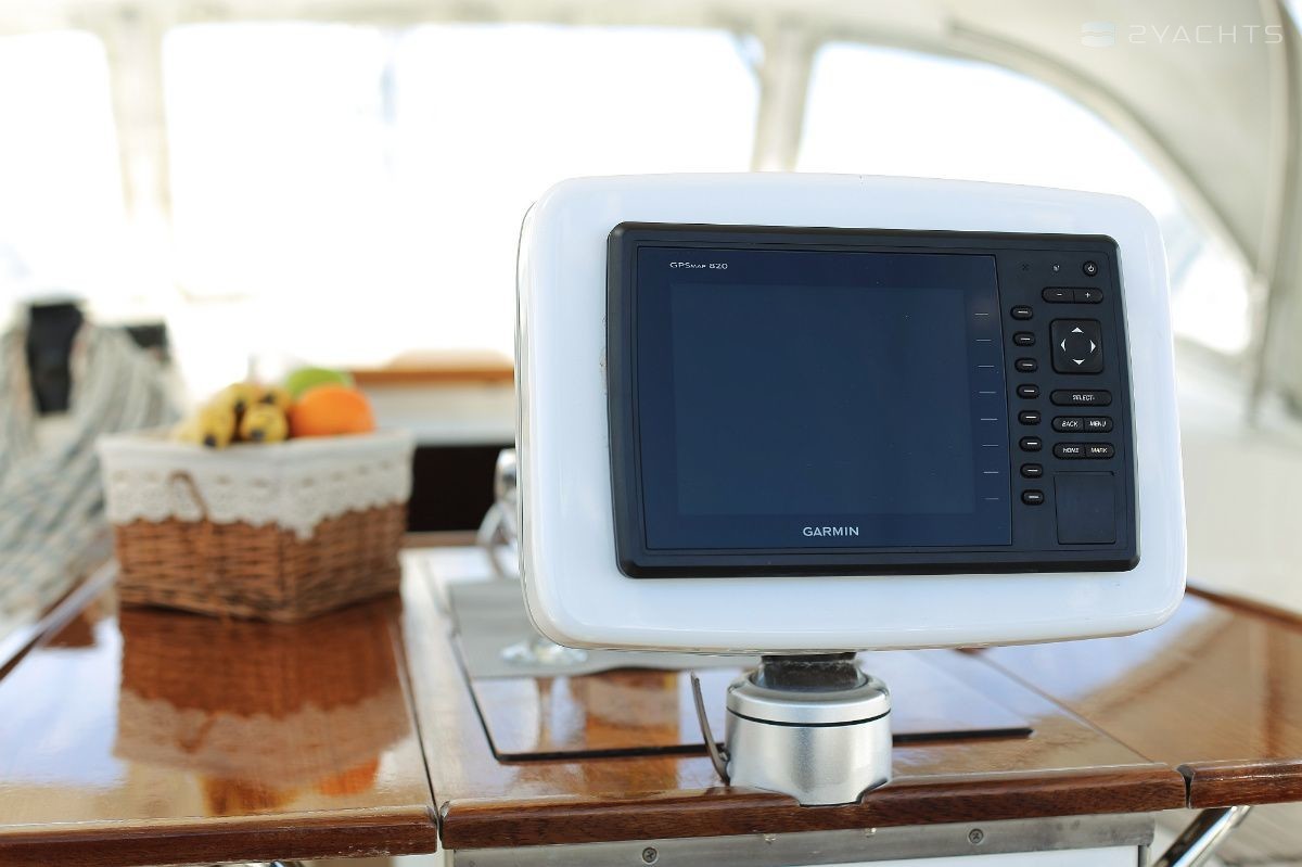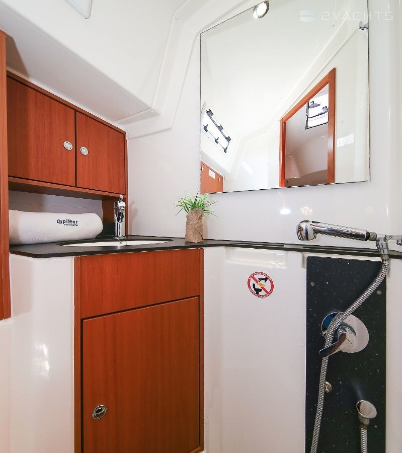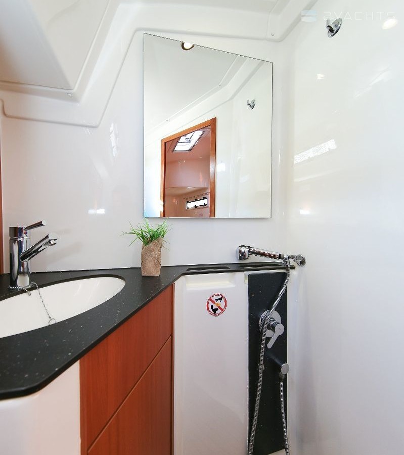 Boat equipment features rolling mainsail, solar panels, bimini and bow thruster. It also boasts a heating, an audio system and outside speakers. The fully-equipped galley includes an oven, cooker, sink and kitchen utensils.