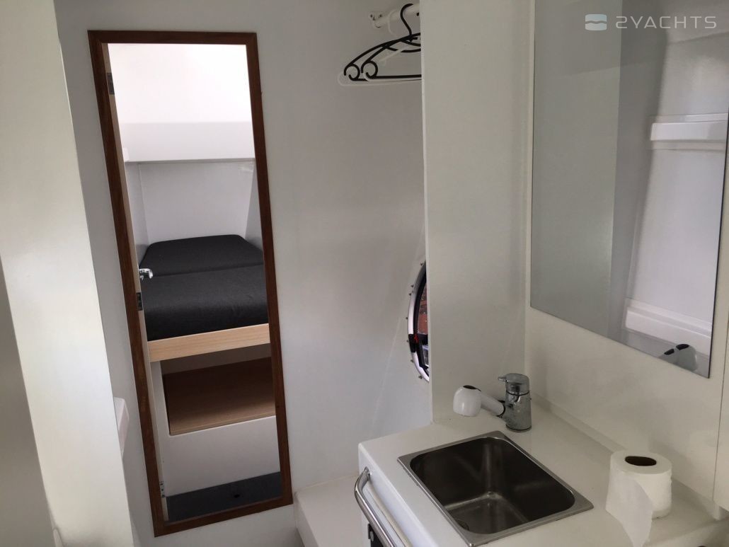 Castor can accommodate up to 8 people in 2 single cabins, 2 double cabins and a saloon with 2 extra beds.