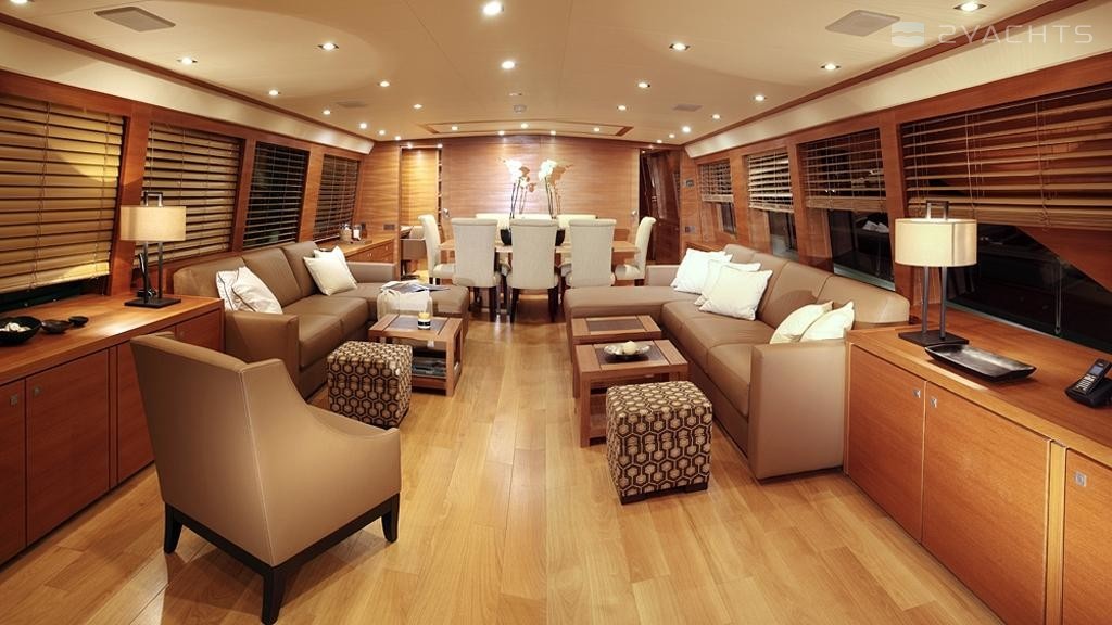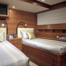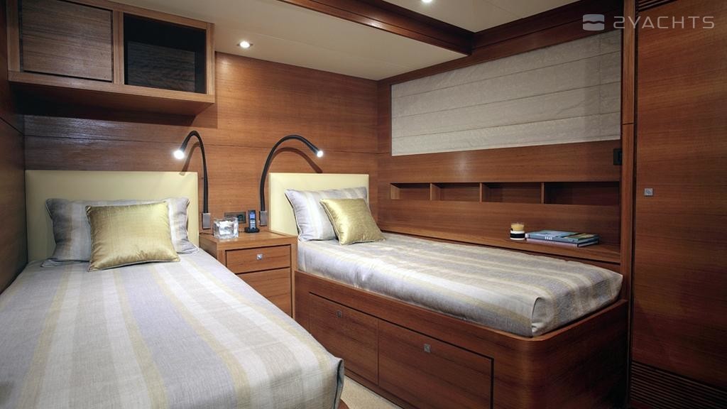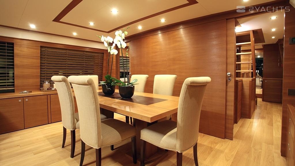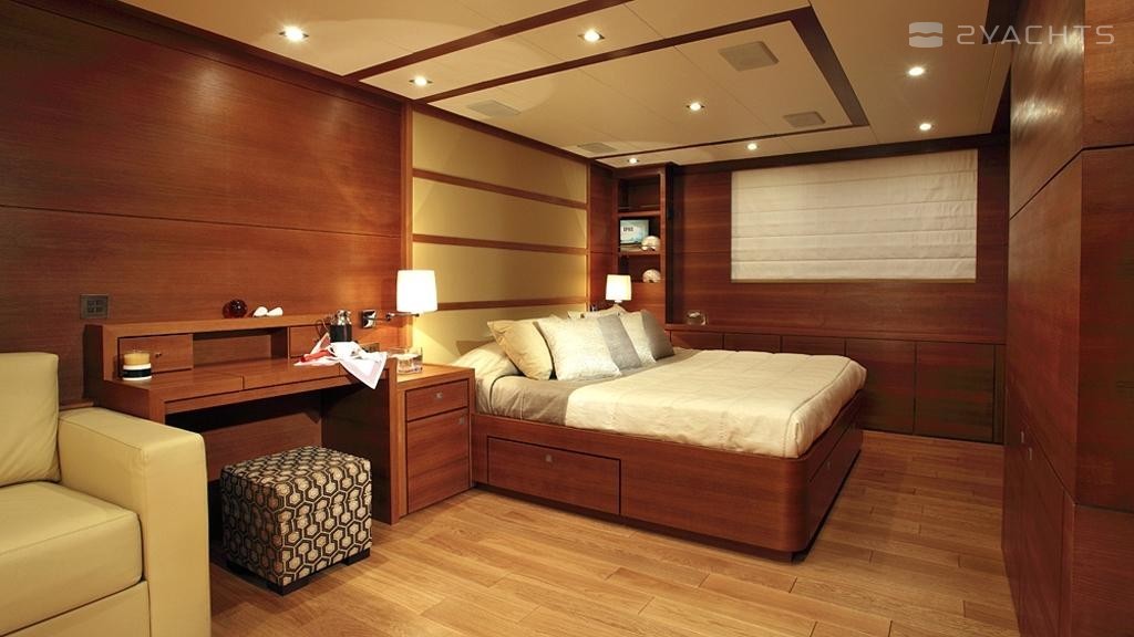 Water Toy III is a 35 m / 114′10″ luxury motor yacht. She was built by Couach in 2008. With a beam of 6.8 m and a draft of 1.7 m, she has a composite hull and composite superstructure. This adds up to a gross tonnage of 172 tons. She is powered by MTU engines of 2400 hp each giving her a maximum speed of 28 knots and a cruising speed of 12 knots. Water Toy III's maximum range is estimated at 450 nautical miles. The motor yacht can accommodate 8 guests in 4 cabins and an exterior design by Cano Lanza.