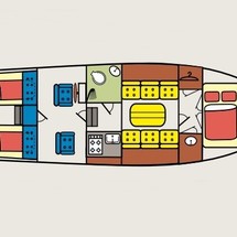 The living area of this houseboat consists of 2 cabins and accommodates 6 people. A shower is at the guests' disposal and there is 1 toilet on board.