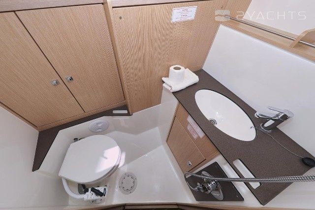 Boat equipment features rolling mainsail, bimini and bow thruster. It also boasts an an audio system and outside speakers. The fully-equipped galley includes an oven, cooker, sink and kitchen utensils.