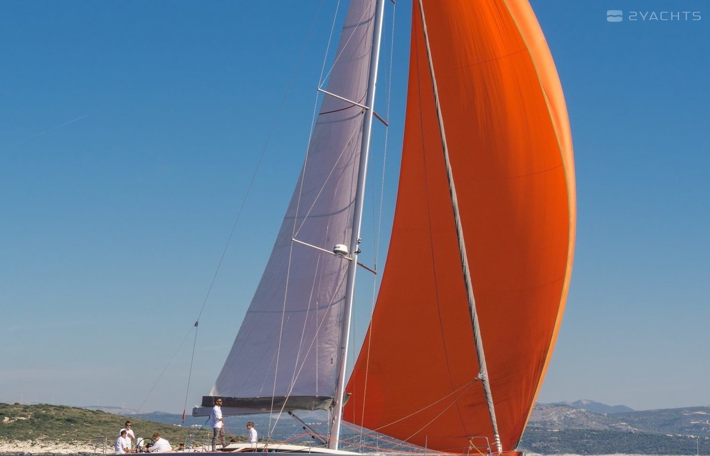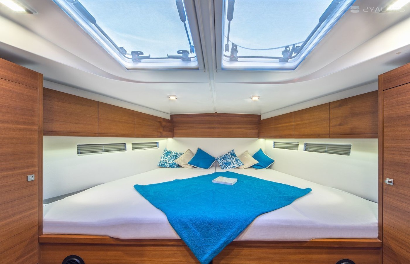 Boat equipment features classical mainsail, electric winches, generator, bimini and bow thruster. It also boasts a heating, air conditioning, an audio system, outside speakers and inside speakers. The fully-equipped galley includes a coffee machine, oven, cooker, sink and kitchen utensils.