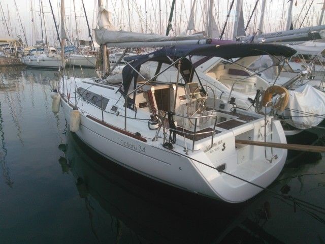 3-cabin sailing yacht Beneteau Oceanis 34 - Mamma Mia was built in 2009, and it is docked in Achillio Marina, Greece.