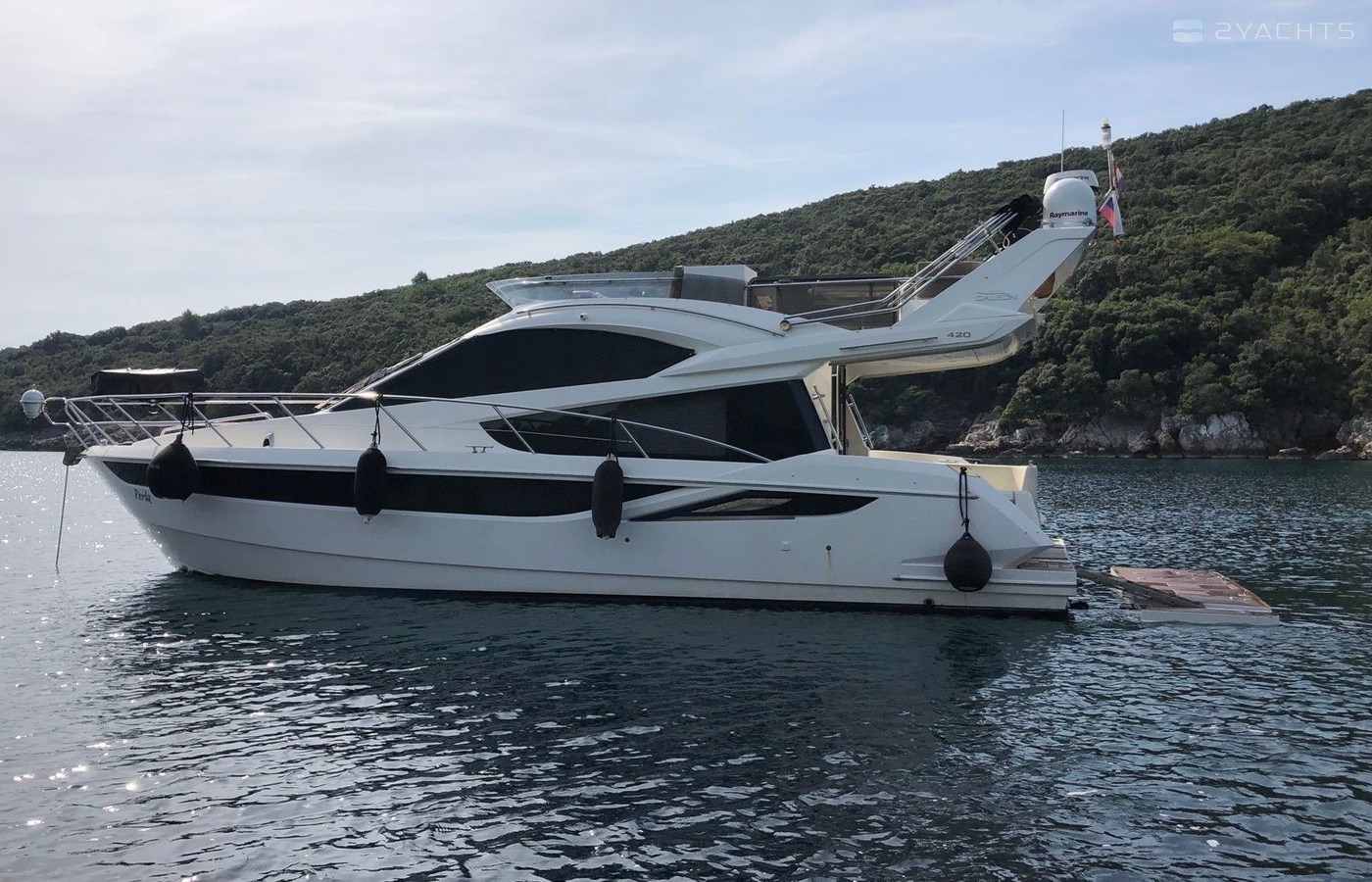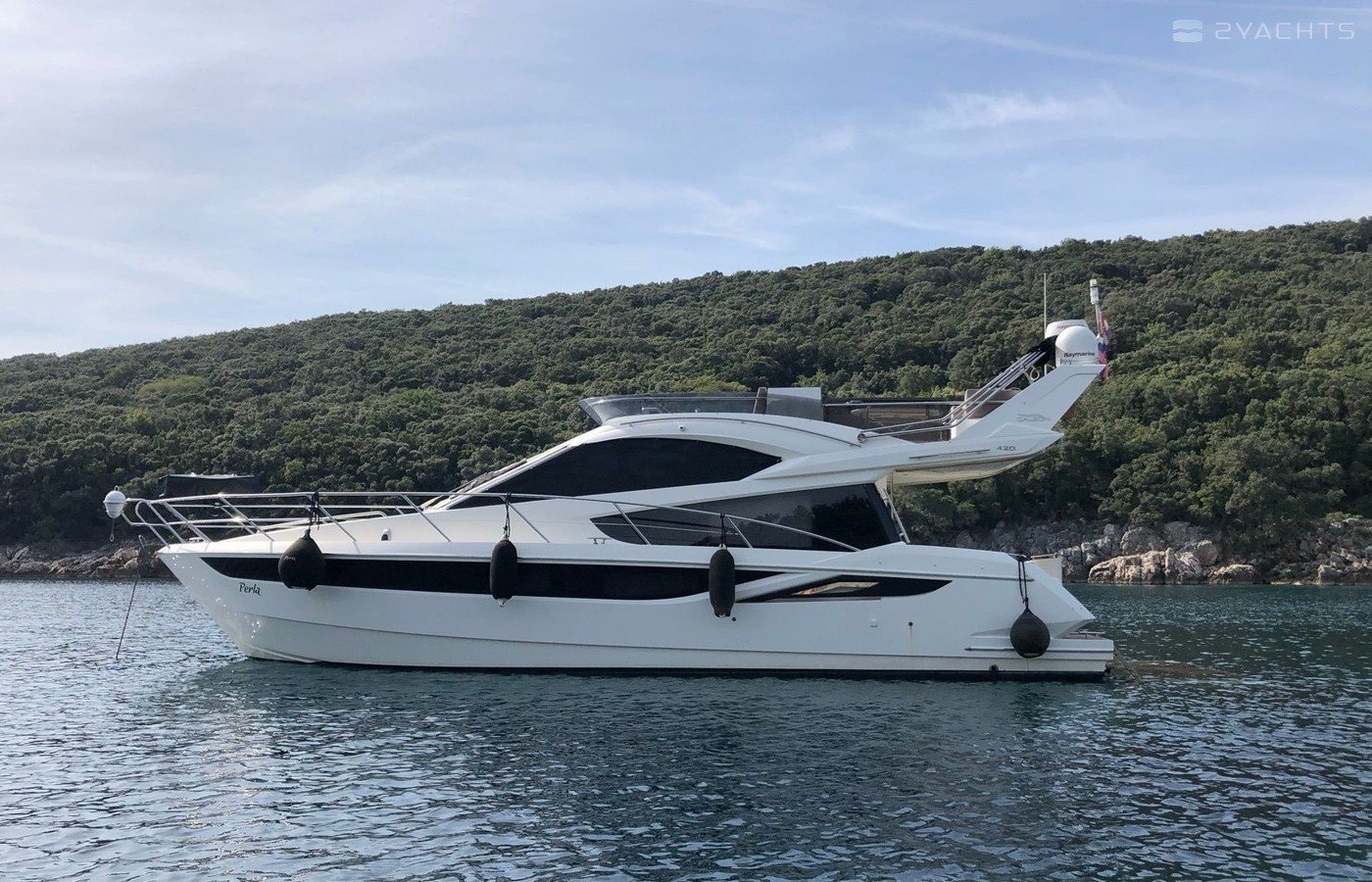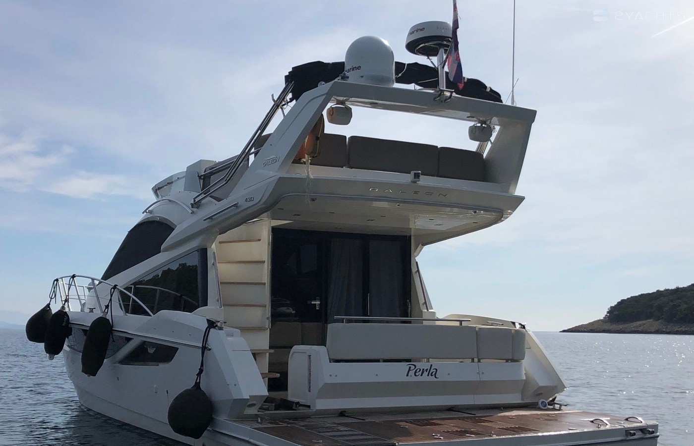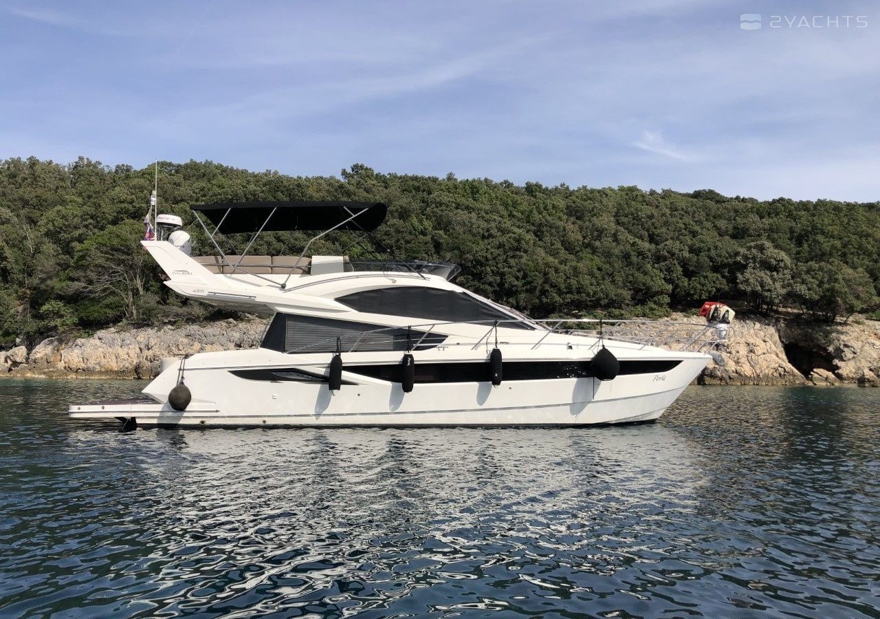 Motor yacht Galeon 420 Fly - Perla was built in 2013, and it is docked in Marina Punat, Croatia.