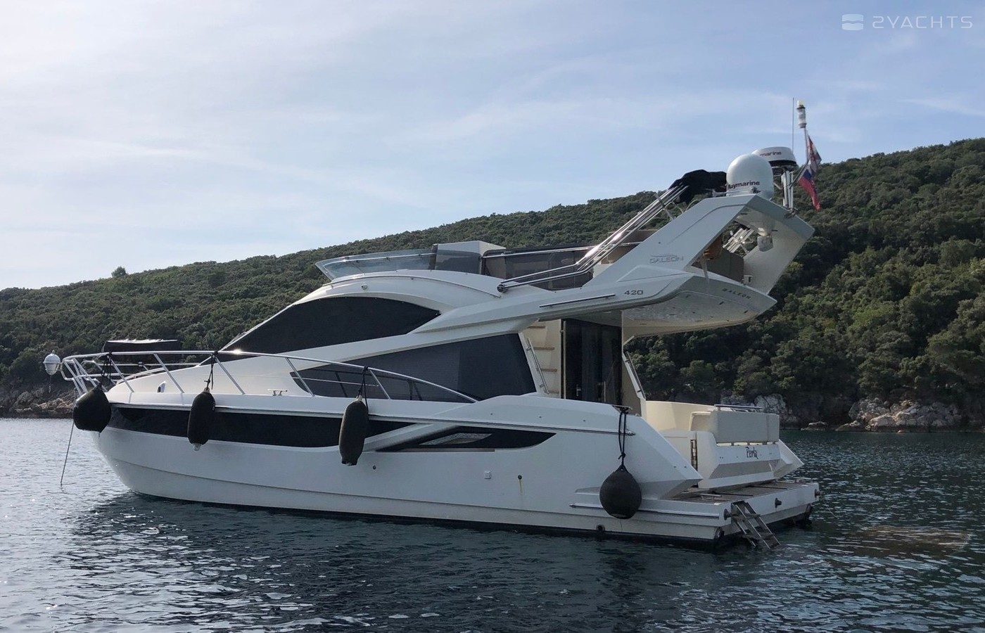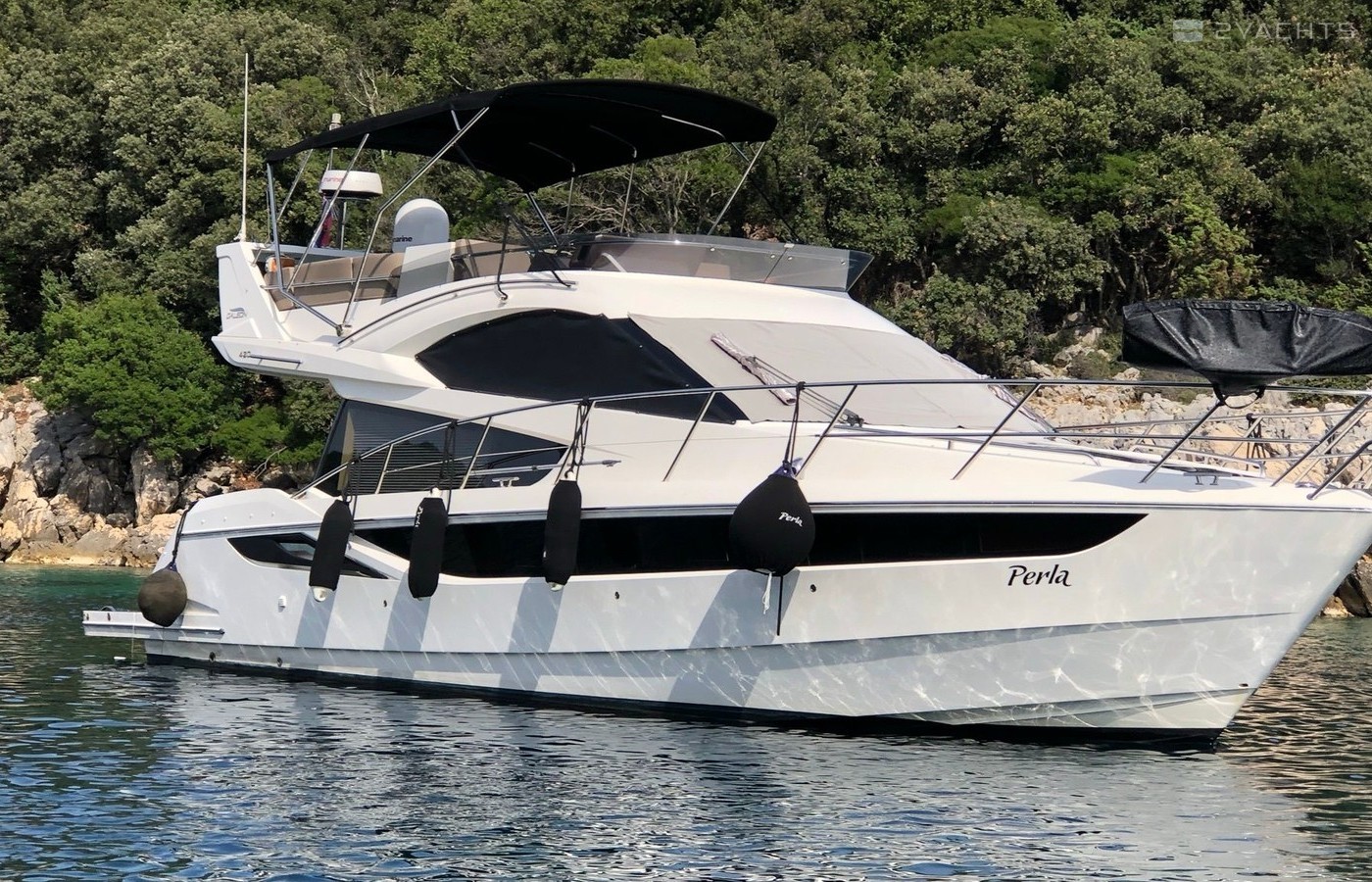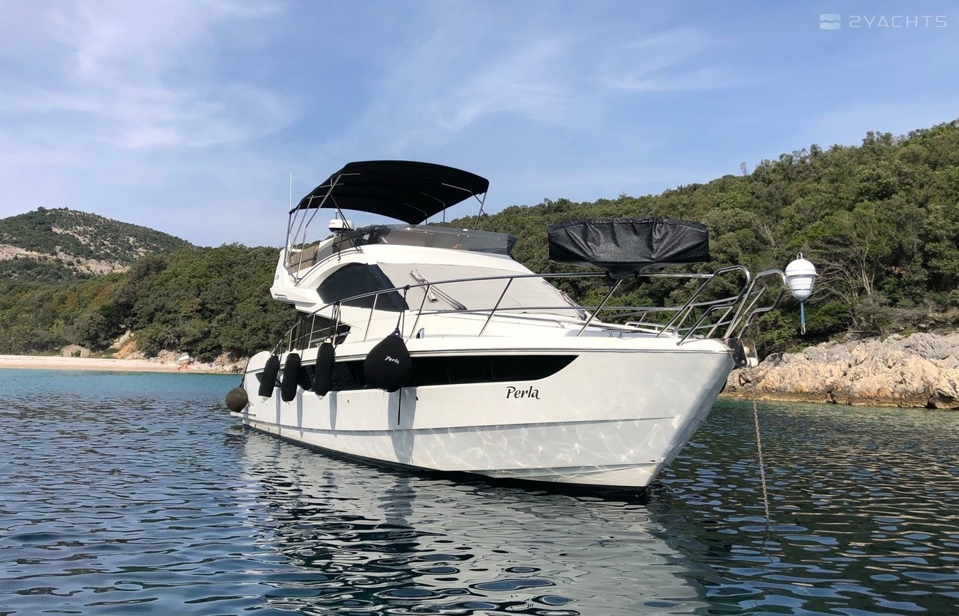 Motor yacht Galeon 420 Fly - Perla was built in 2013, and it is docked in Marina Punat, Croatia.