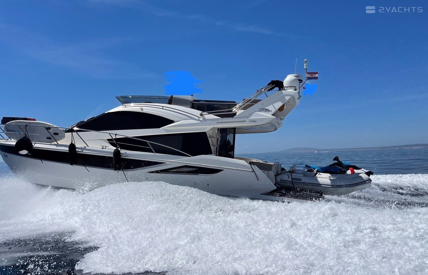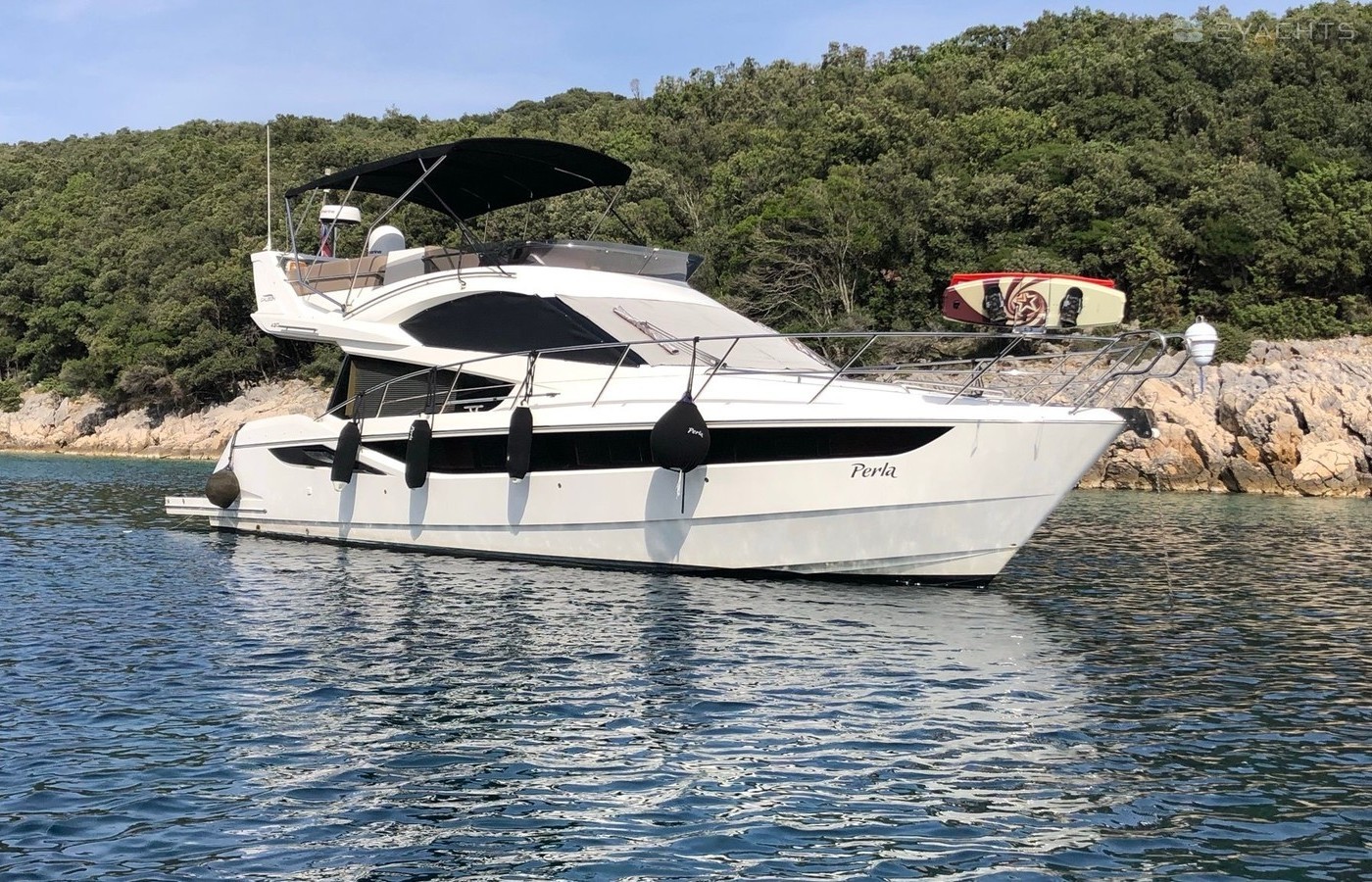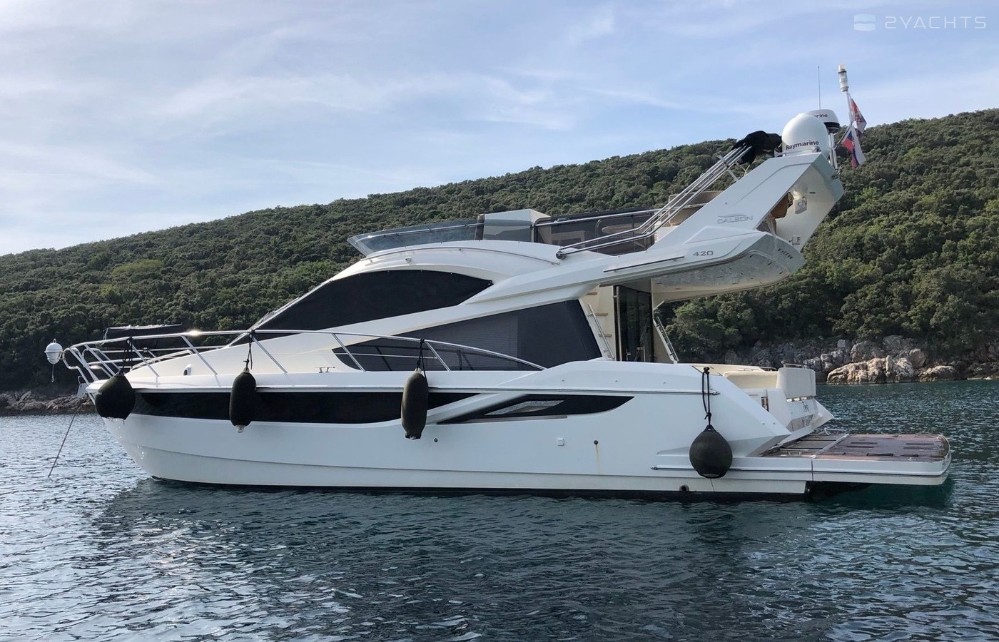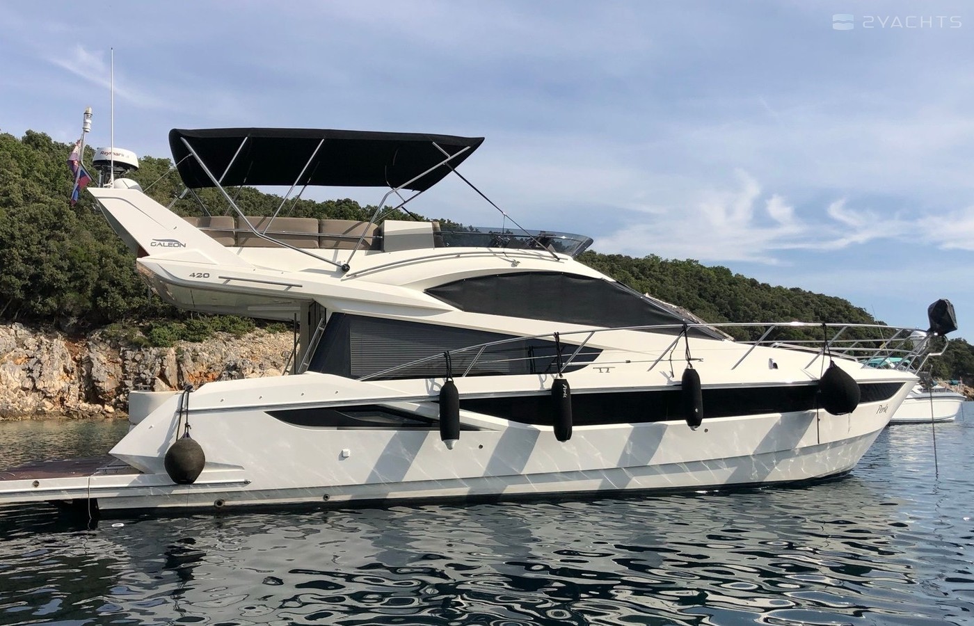 Motor yacht Galeon 420 Fly - Perla was built in 2013, and it is docked in Marina Punat, Croatia.