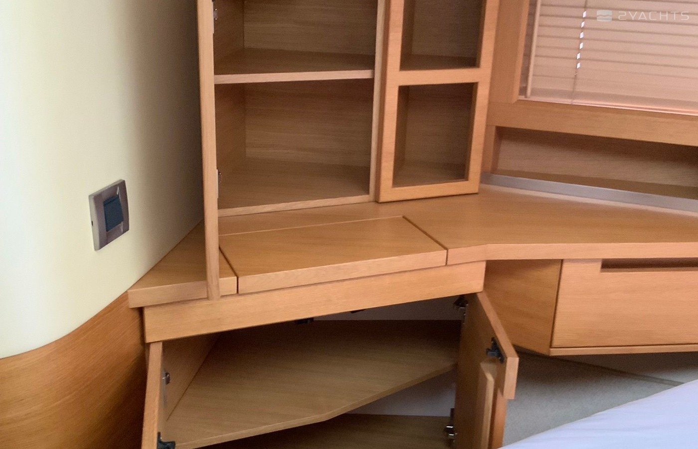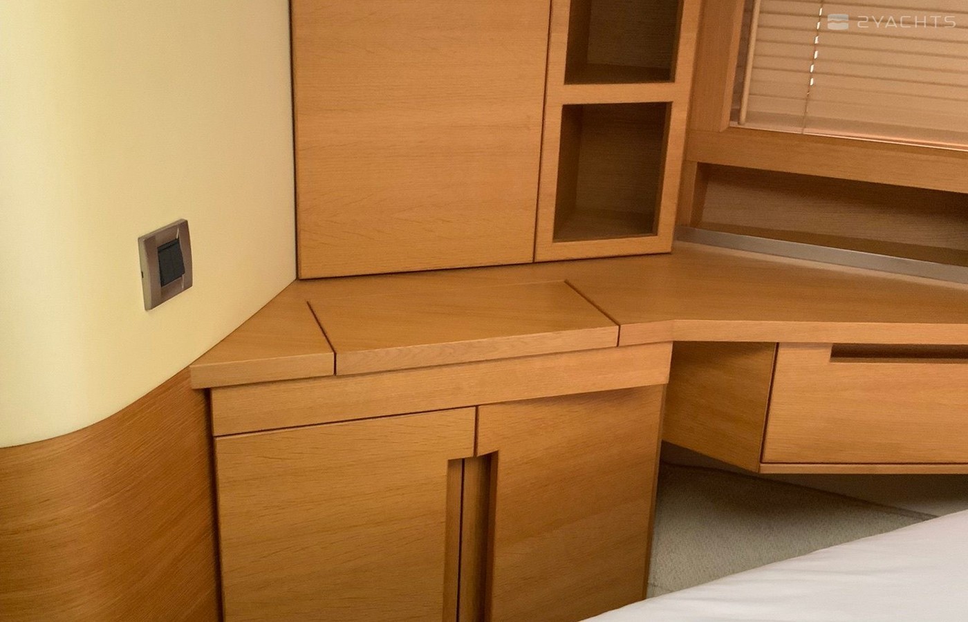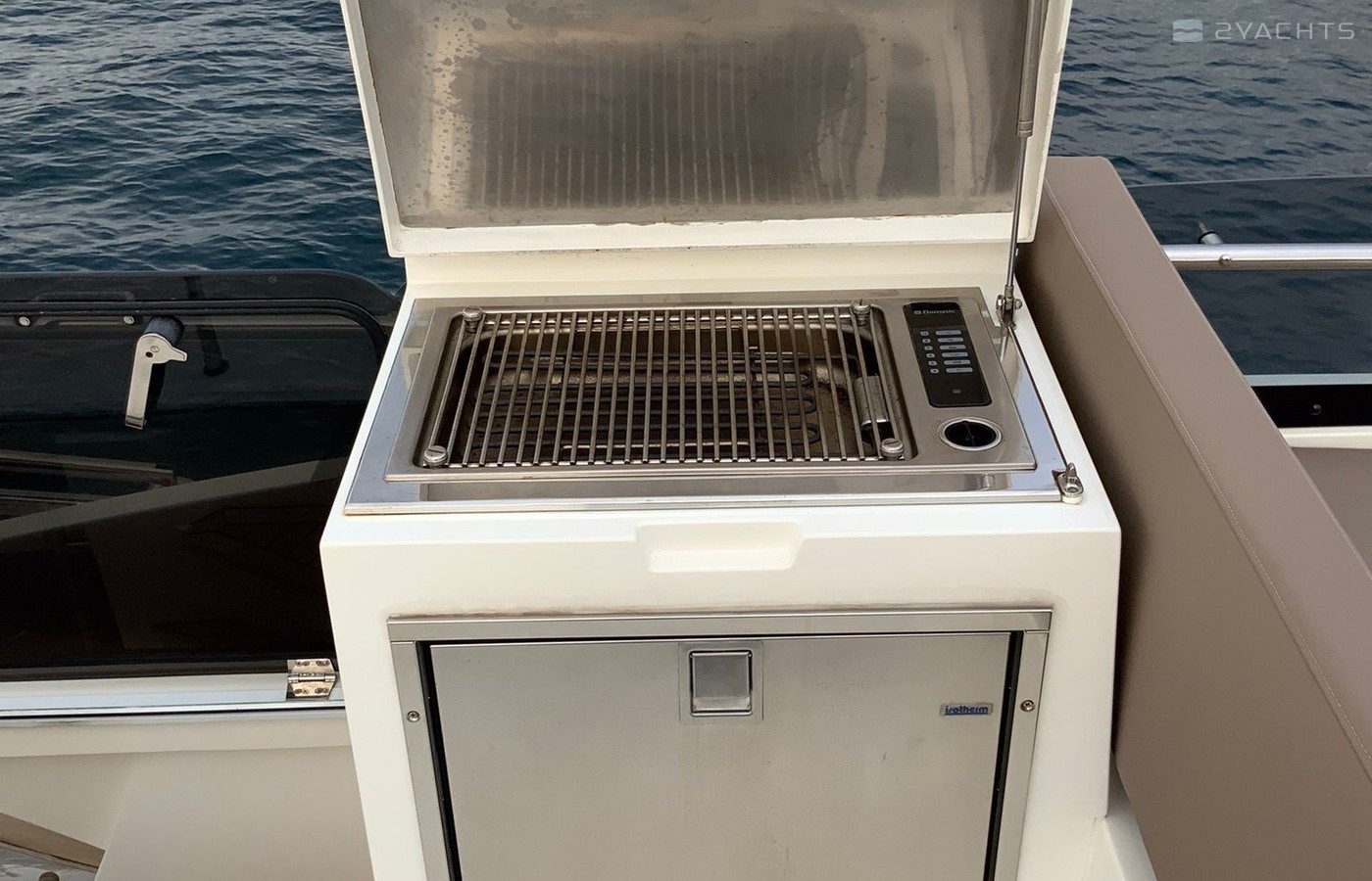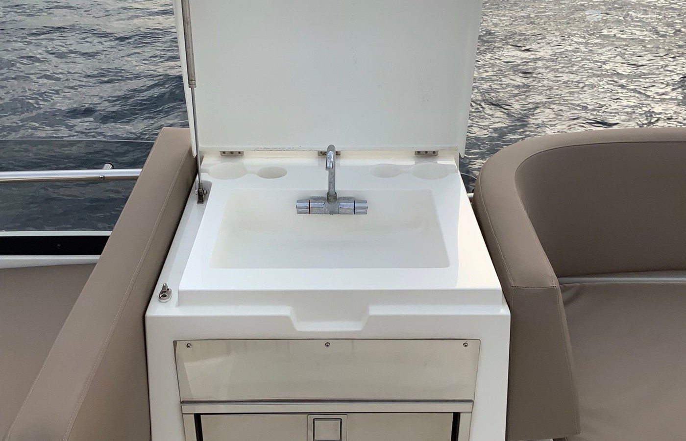 Boat equipment features radar, generator, salon gps plotter, bbq and bimini. It also boasts a jet ski, flat screen tv, heating, air conditioning and audio system. The fully-equipped galley includes a microwave, ice maker, freezer, cooker and sink.