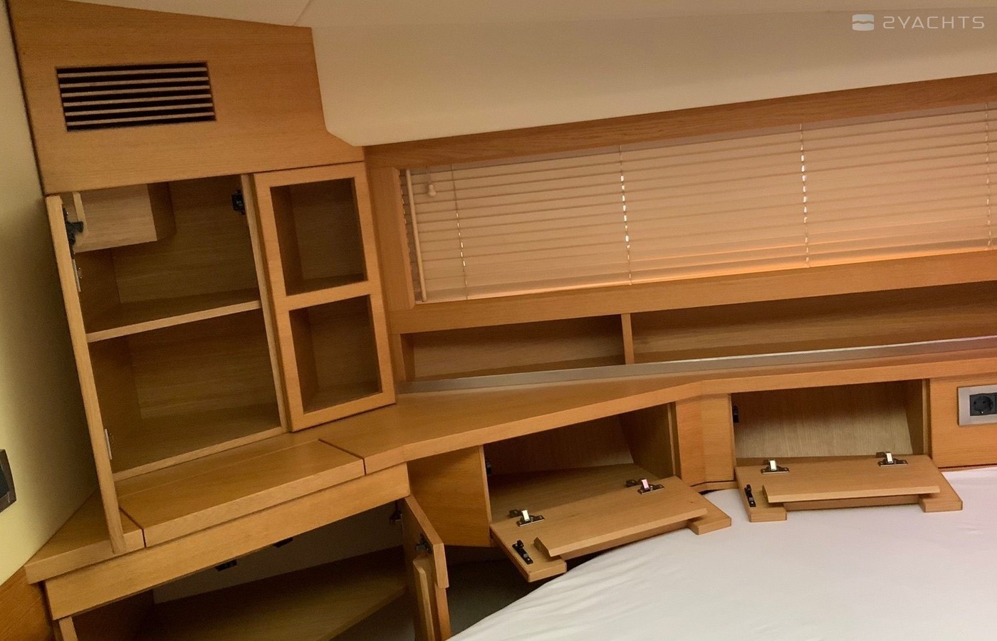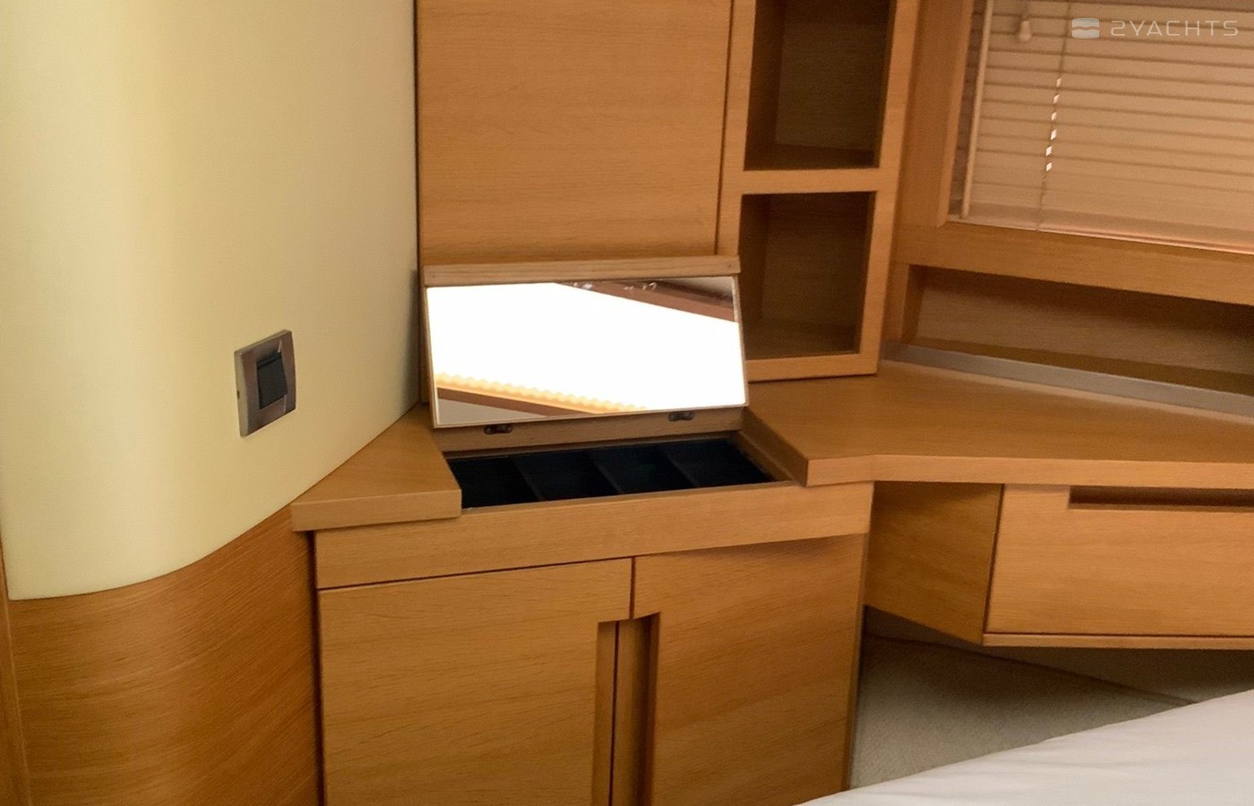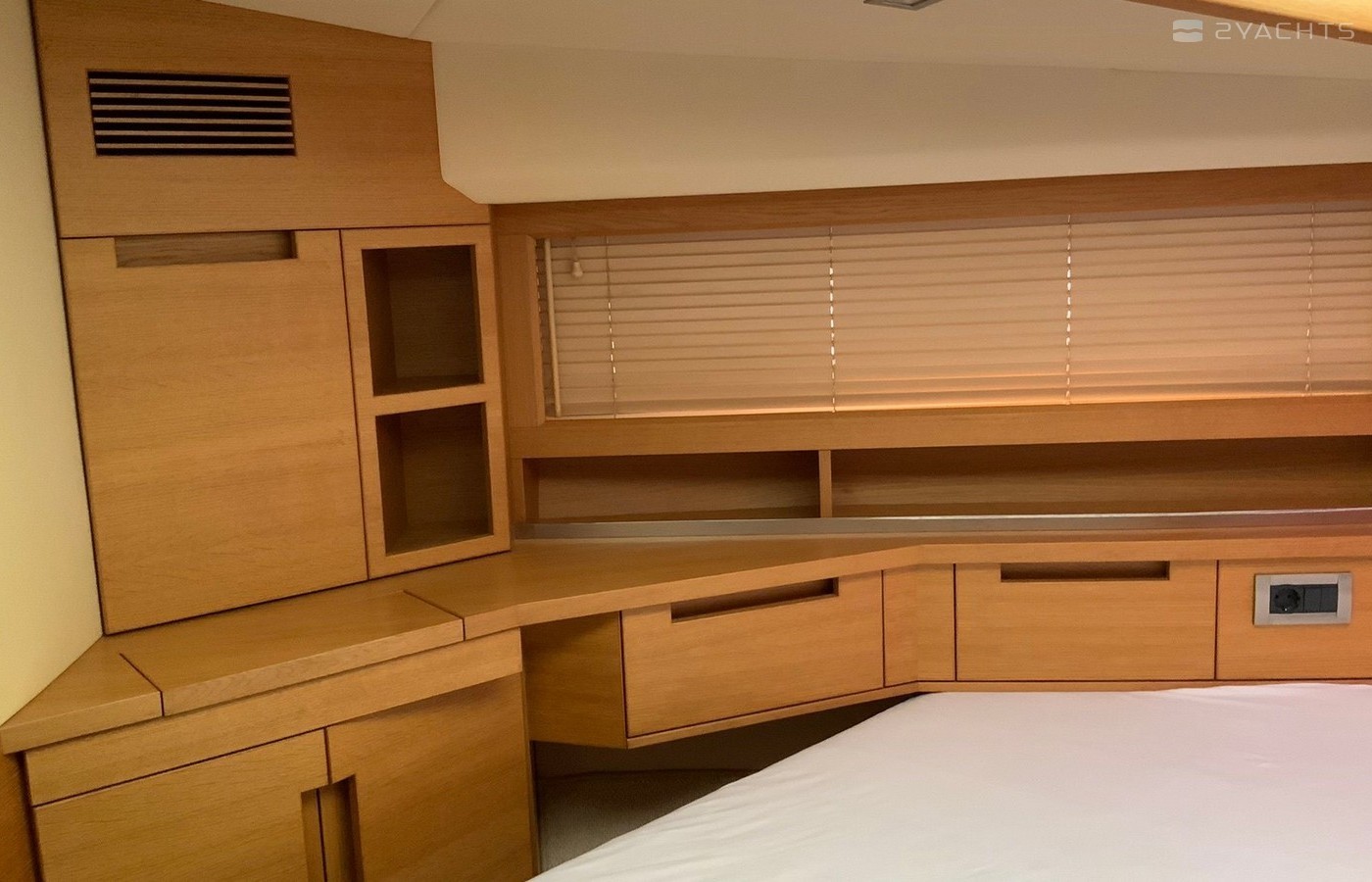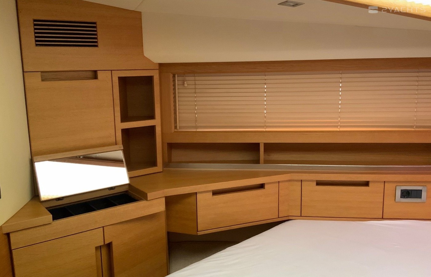 Boat equipment features radar, generator, salon gps plotter, bbq and bimini. It also boasts a jet ski, flat screen tv, heating, air conditioning and audio system. The fully-equipped galley includes a microwave, ice maker, freezer, cooker and sink.