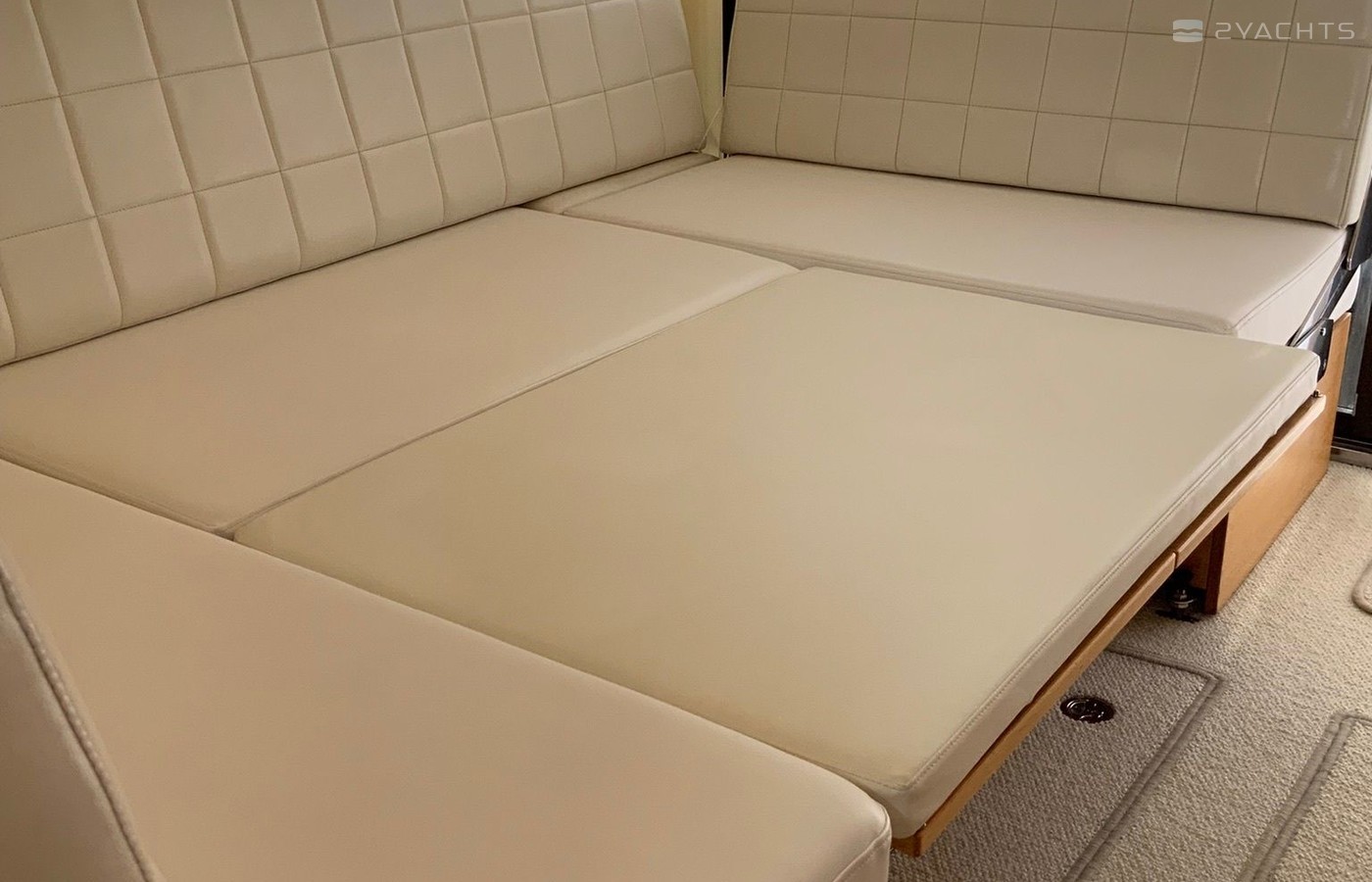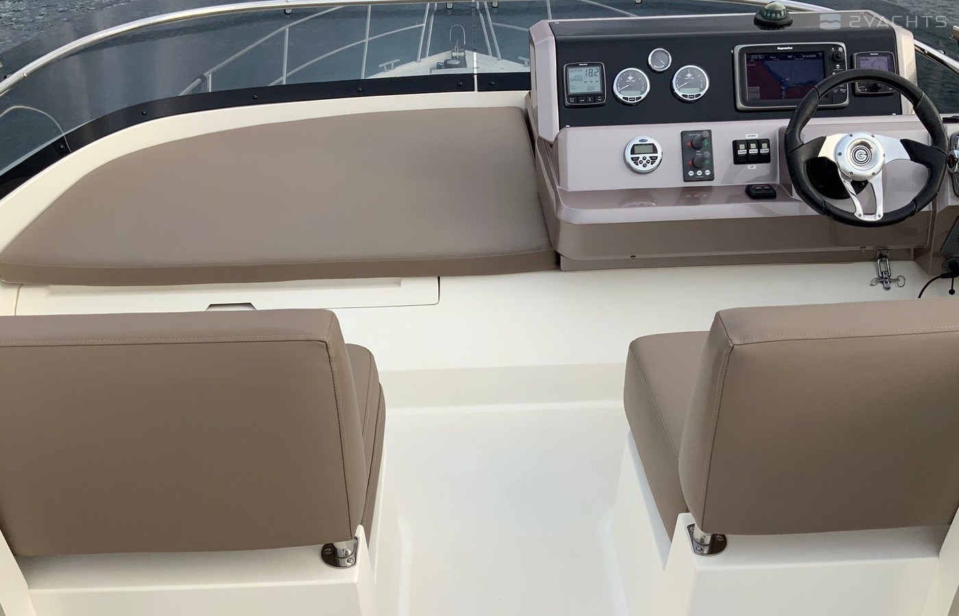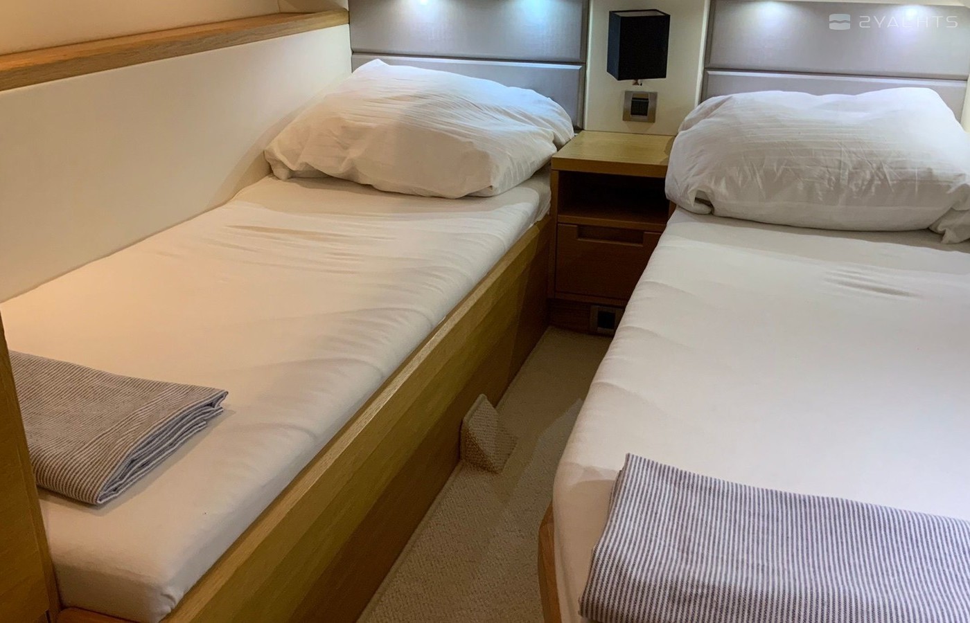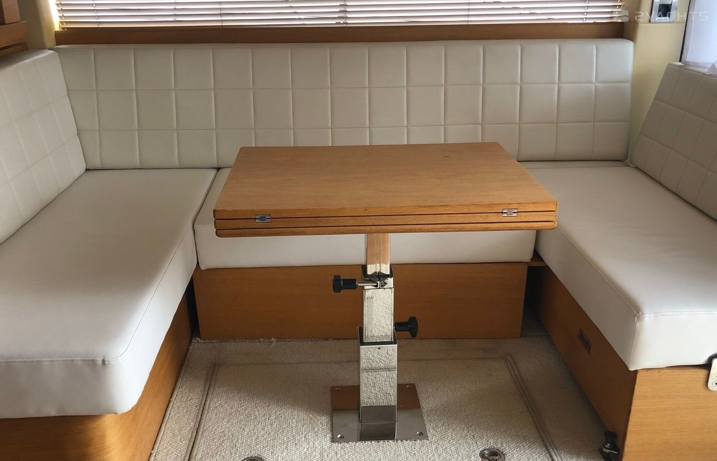 Boat equipment features radar, generator, salon gps plotter, bbq and bimini. It also boasts a jet ski, flat screen tv, heating, air conditioning and audio system. The fully-equipped galley includes a microwave, ice maker, freezer, cooker and sink.