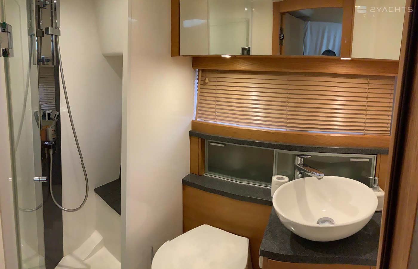 Motor yacht Perla offers 2 toilets with a shower.