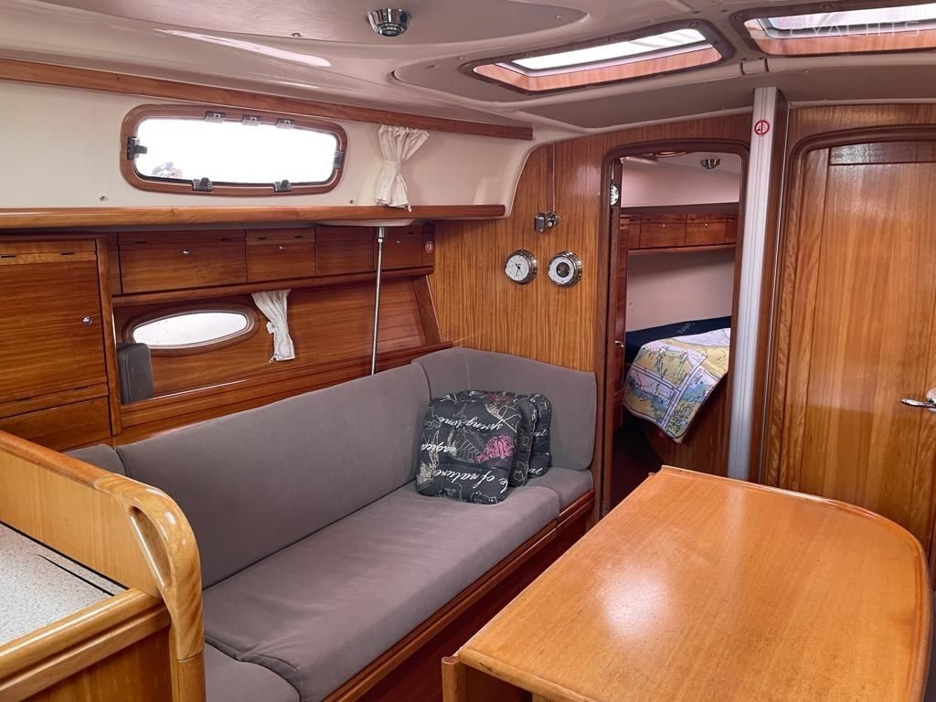 Boat equipment features classical mainsail, salon gps plotter and outside gps plotter. It also boasts a heating, an audio system and inside speakers. The fully-equipped galley includes an oven, cooker, sink and kitchen utensils.