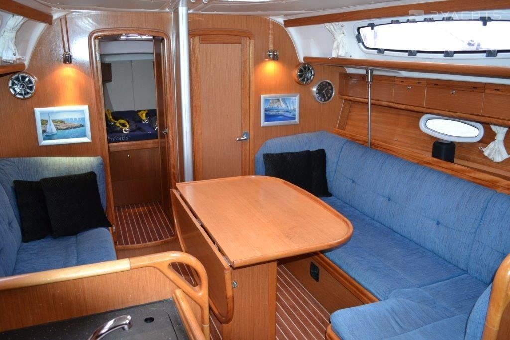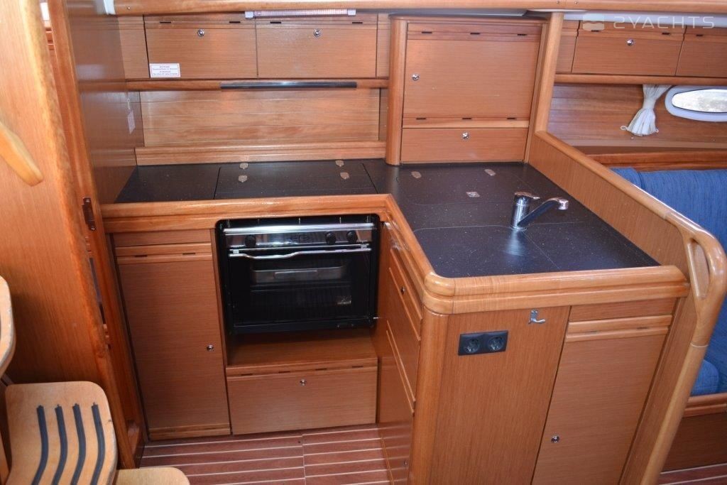 Boat equipment features Rolling mainsail and Outside GPS plotter. It also boasts Heating, an Audio system, Outside speakers and Inside speakers. The fully-equipped galley includes Oven, Cooker, Sink and Kitchen utensils.