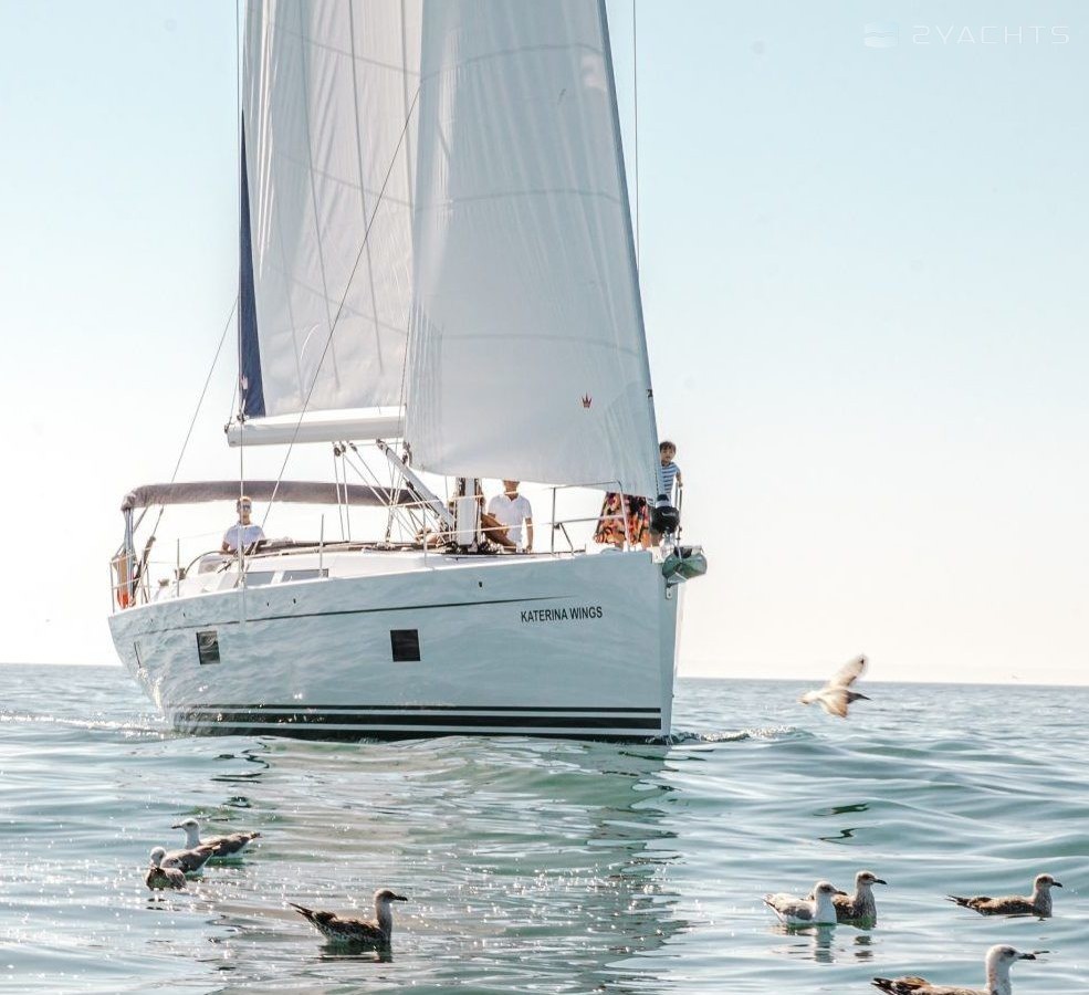 5-cabin sailing yacht Hanse 508 - Katerina Wing was built in 2020, and it is docked in Club Nàutic Sant Antoni de Portmany, Spain.