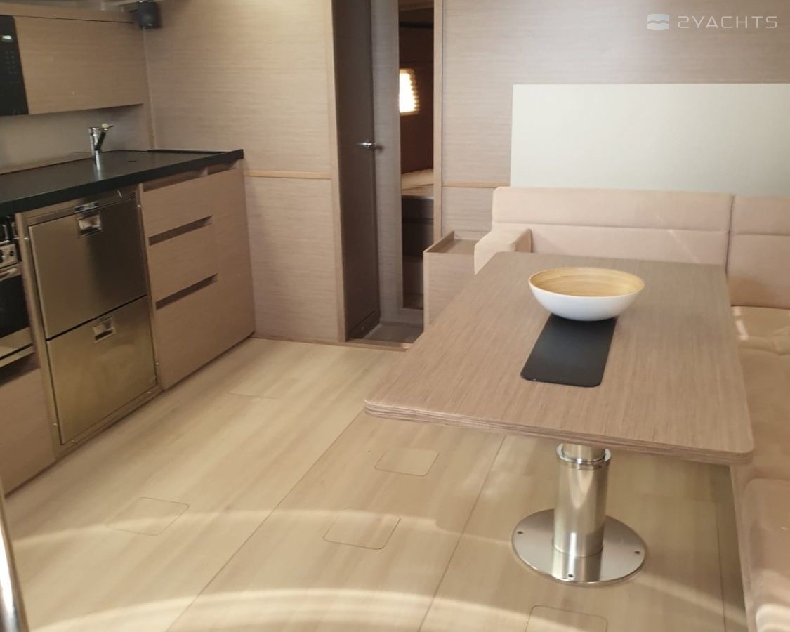 Boat equipment features rolling mainsail, electric winches, solar panels, generator, bimini and outside gps plotter. It also boasts a flat screen tv, an audio system, outside speakers and inside speakers. The fully-equipped galley includes a coffee machine, oven, cooker, sink and kitchen utensils.