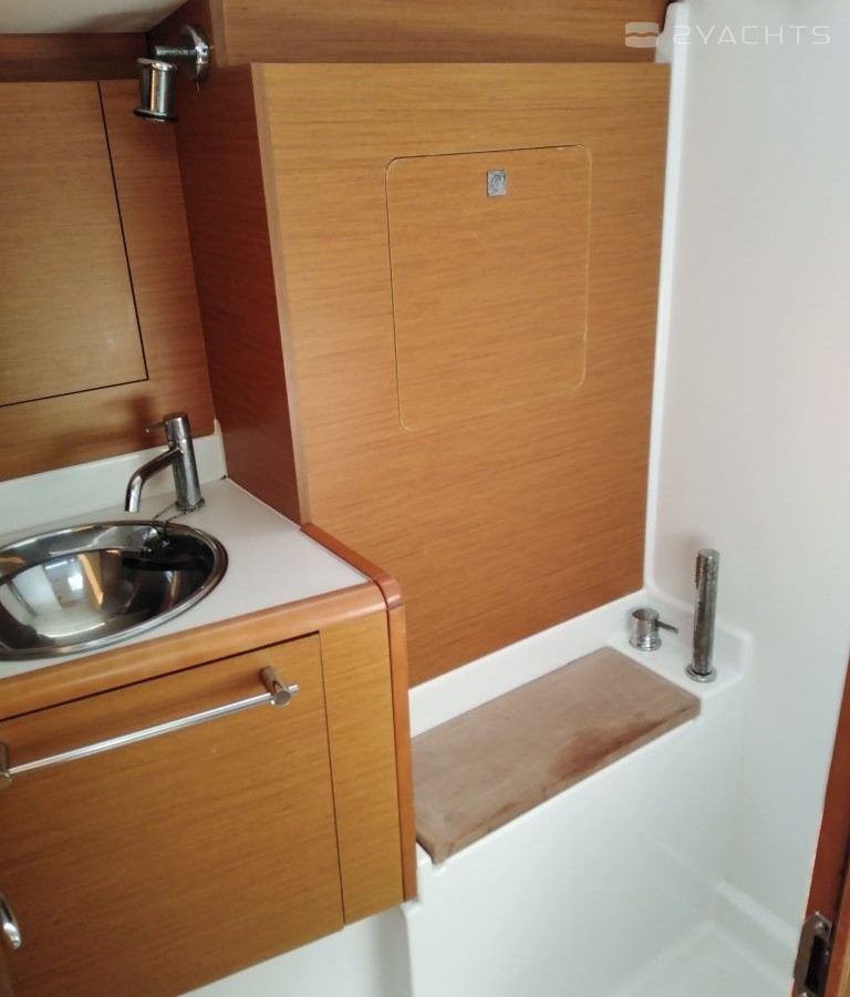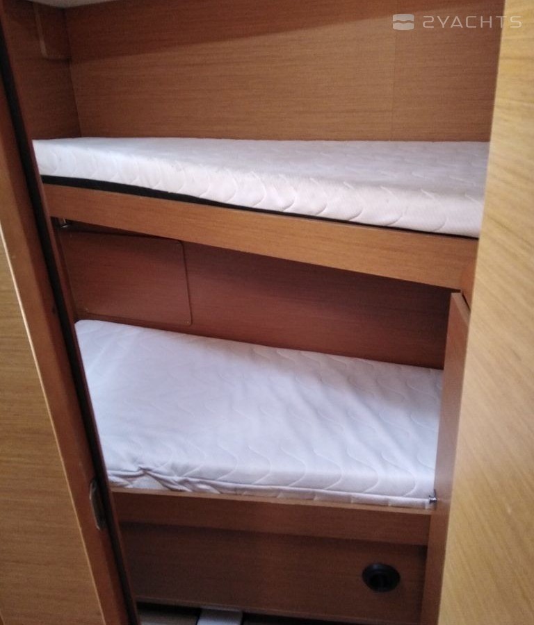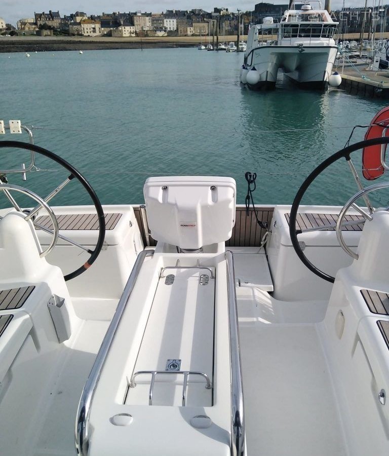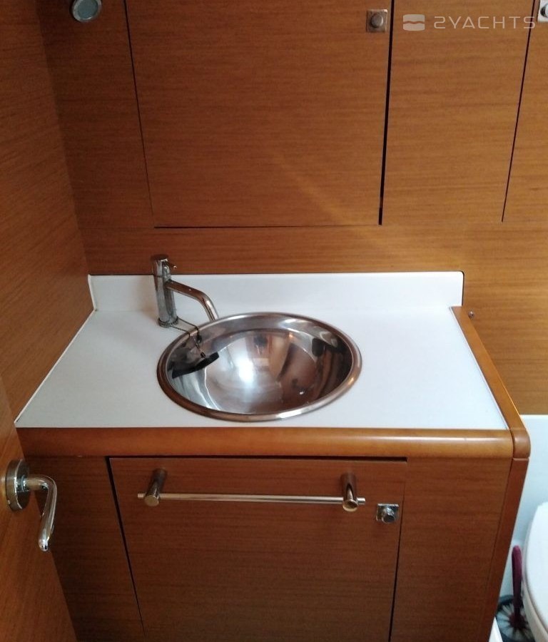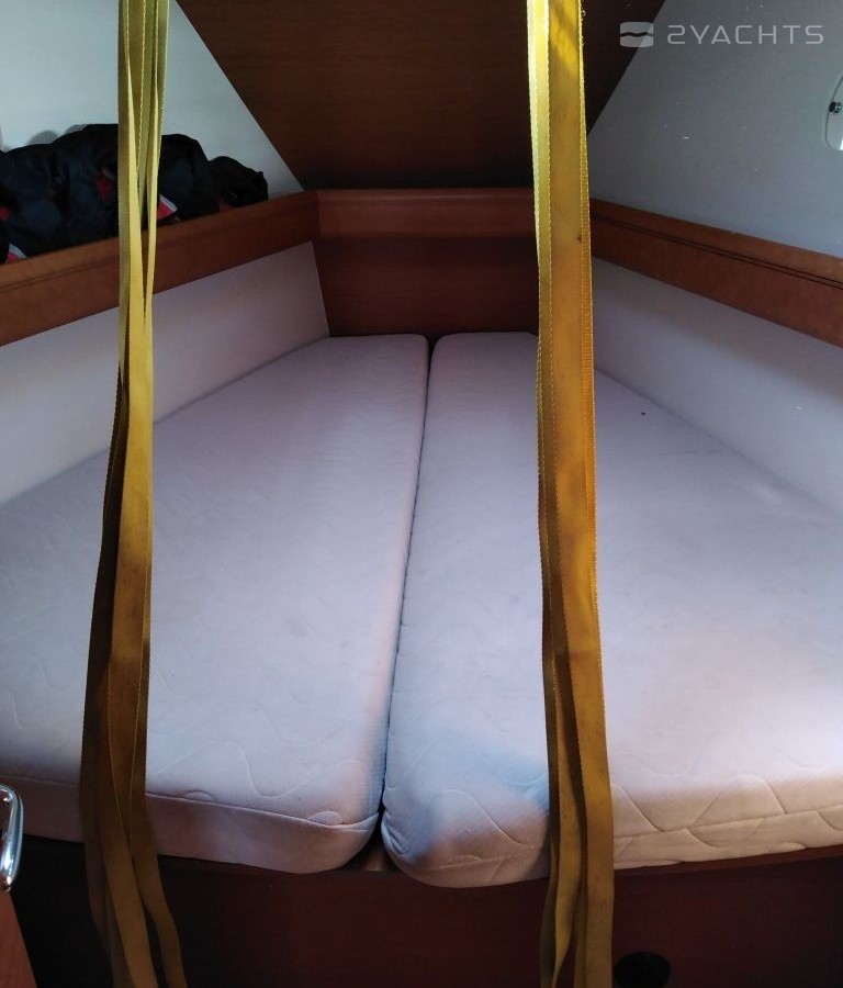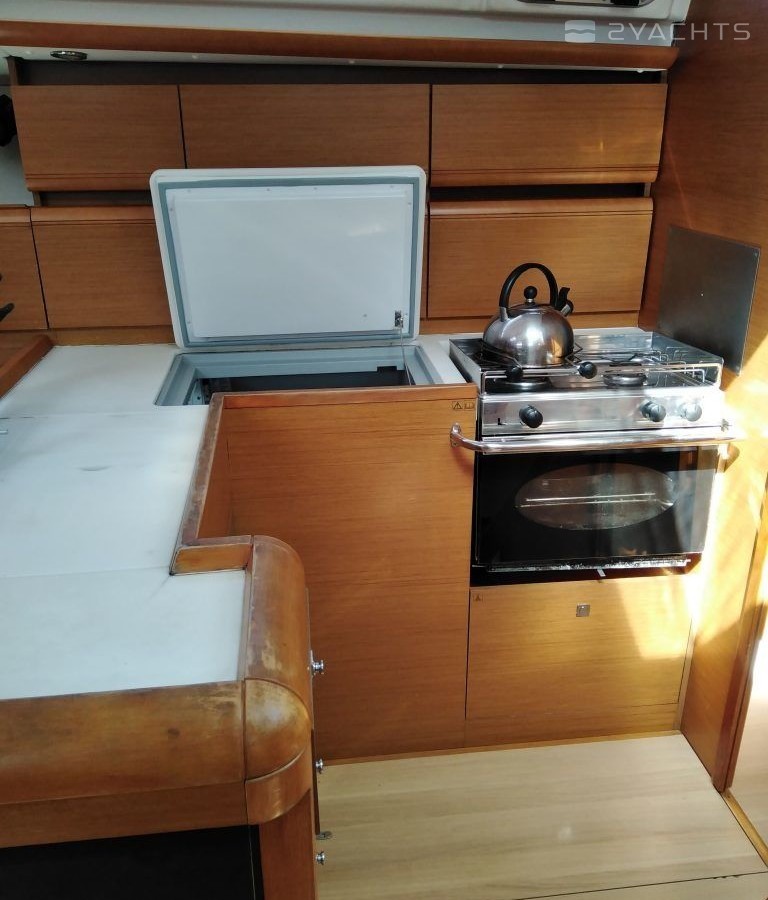 Boat equipment features classical mainsail and outside gps plotter. It also boasts a heating. The fully-equipped galley includes an oven, cooker, sink and kitchen utensils.