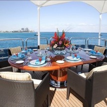 Boat equipment features radar, generator, salon gps plotter, bbq and bimini. It also boasts a jet ski, flat screen tv, heating, air conditioning and washing machine. The fully-equipped galley includes a microwave, dishwasher, ice maker, freezer and coffee machine.