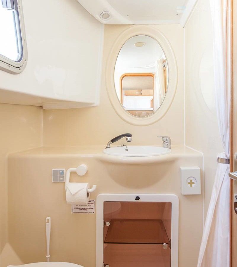 A well-equipped galley with oven, cooker, sink and kitchen utensils is prepared to facilitate cooking. There is also a coffee machine on board.