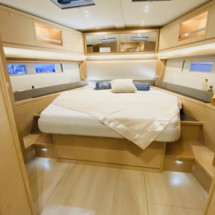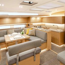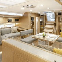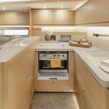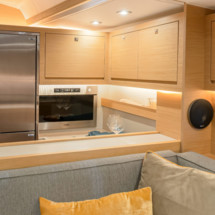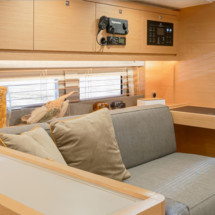 Boat equipment features classical mainsail, electric winches, solar panels, radar, generator and salon gps plotter. It also boasts a flat screen tv, heating, air conditioning, an audio system and outside speakers. The fully-equipped galley includes a microwave, ice maker, oven, cooker and sink.