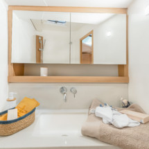Tupelo Honey can accommodate up to 10 people in 3 double cabins, 1 double cabin with a bunk bed and a saloon with 2 extra beds. Pillows and blankets are included in the price.