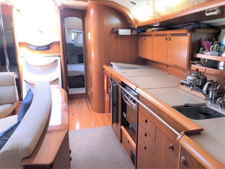 Boat equipment features rolling mainsail, radar, generator, bimini and bow thruster. It also boasts a flat screen tv, heating, air conditioning, an audio system and dvd player. The fully-equipped galley includes a freezer, oven, cooker, sink and kitchen utensils.