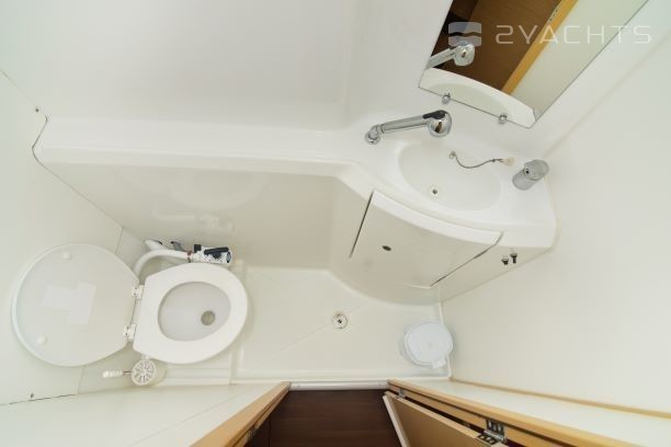 Boat equipment features classical mainsail, salon gps plotter and bimini. It also boasts an an audio system, outside speakers and inside speakers. The fully-equipped galley includes an oven, cooker, sink and kitchen utensils.