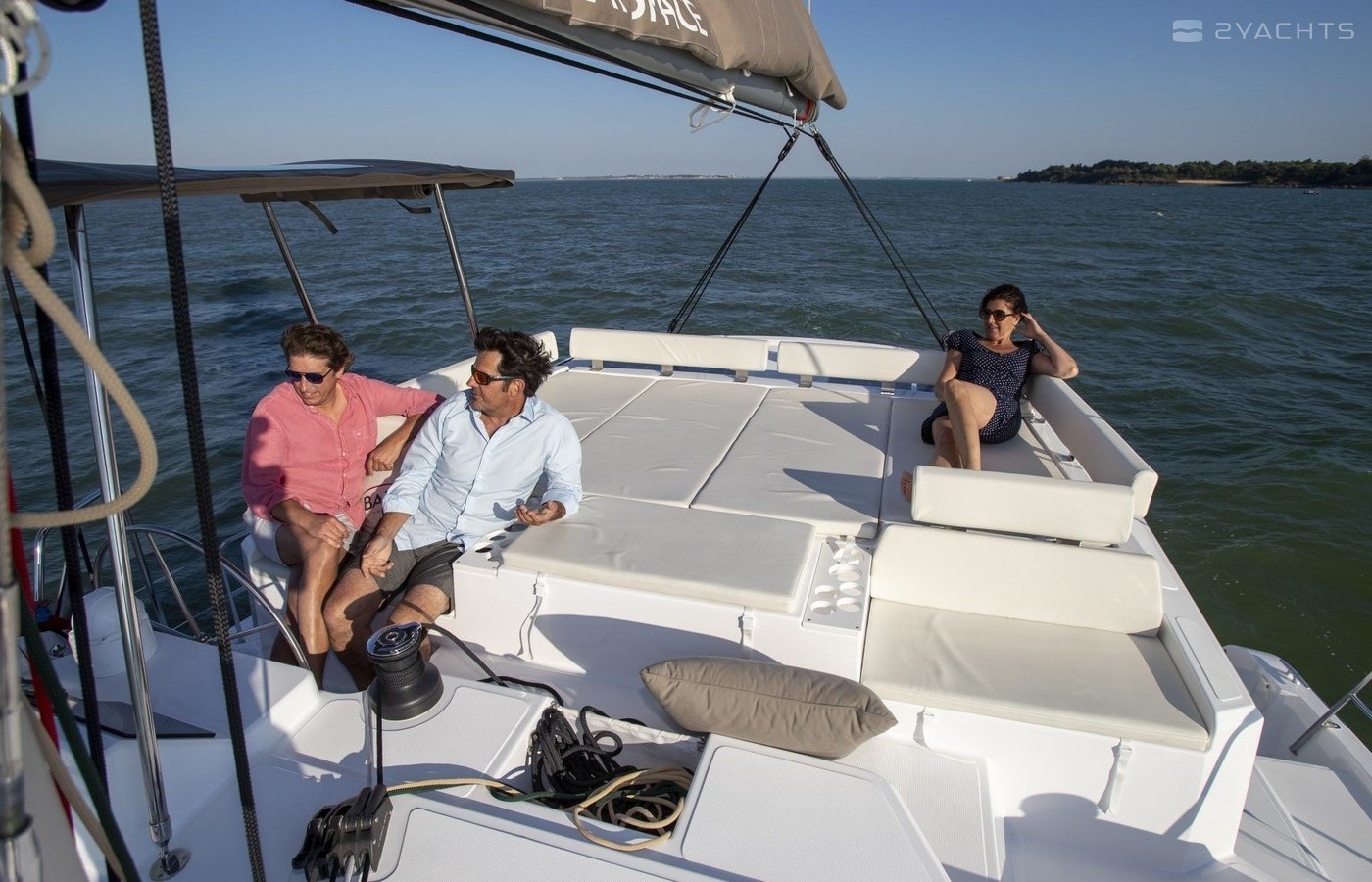 This catamaran is operated by the charter company Dream Yacht Charter.