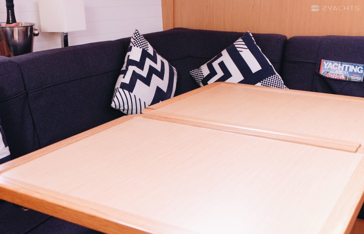 Grand Cru can accommodate up to 10 people in 3 double cabins, 1 double cabin with a bunk bed and a saloon with 2 extra beds. Pillows and blankets are included in the price.