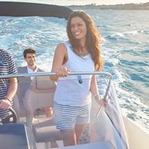 This motorboat is operated by the charter company Velas Y Viento.