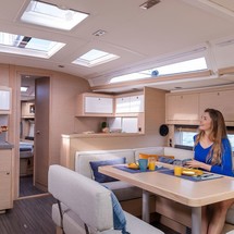 Boat equipment features classical mainsail, bimini and bow thruster. It also boasts an an audio system, outside speakers and inside speakers. The fully-equipped galley includes an oven, cooker, sink and kitchen utensils.