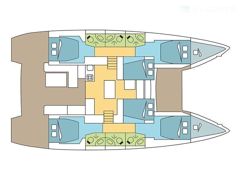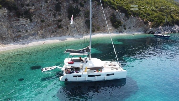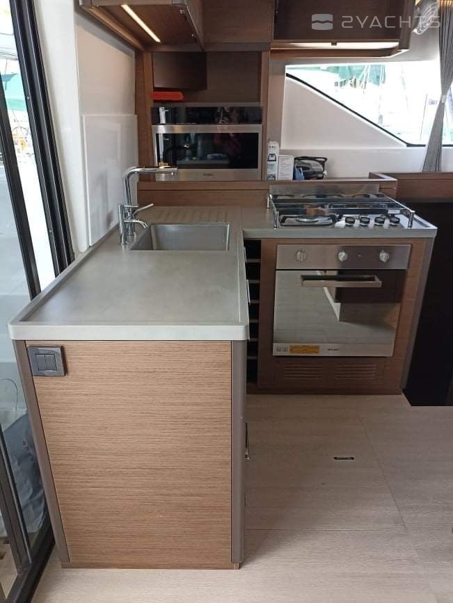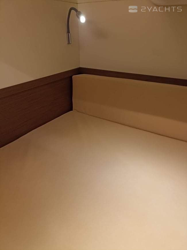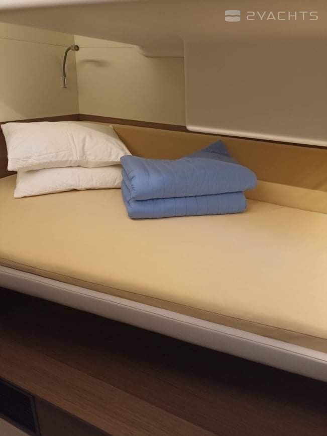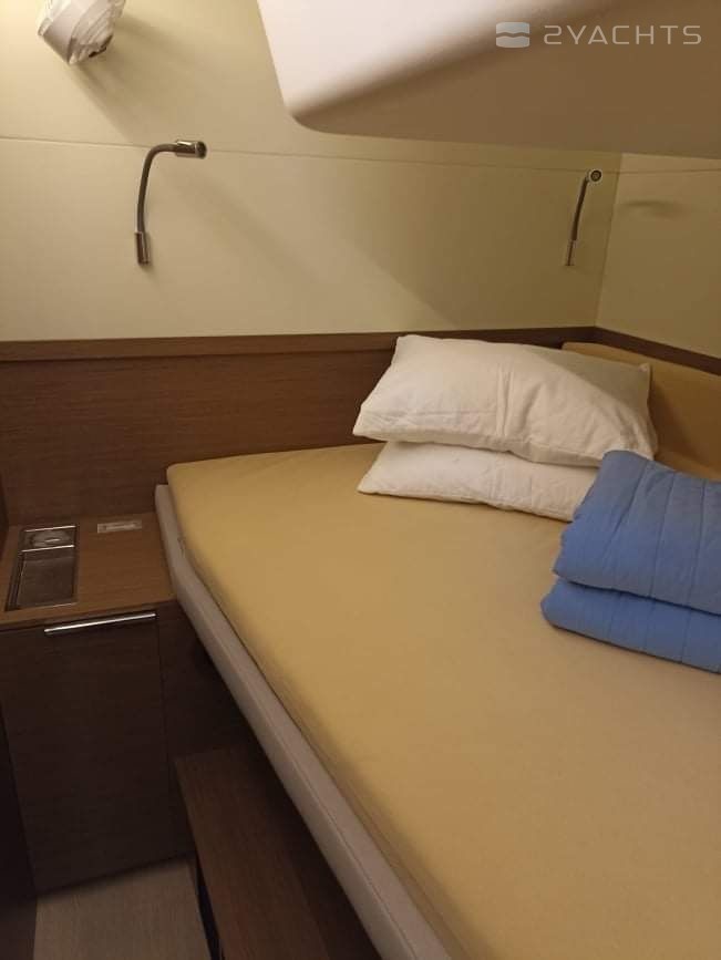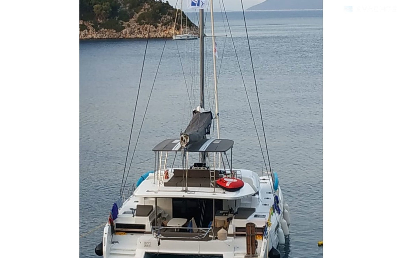 Boat equipment features classical mainsail, electric winches, solar panels, generator, bimini and outside gps plotter. It also boasts a flat screen tv, heating, air conditioning, an audio system and outside speakers. The fully-equipped galley includes a microwave, ice maker, freezer, oven and cooker.