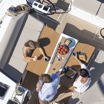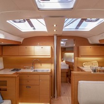 Boat equipment features classical mainsail, bimini and outside gps plotter. It also boasts an an audio system, outside speakers and inside speakers. The fully-equipped galley includes an oven, cooker, sink and kitchen utensils.