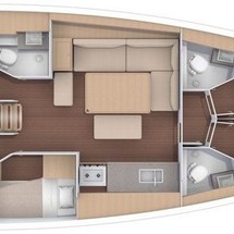 Boat equipment features rolling mainsail, salon gps plotter, bbq, bimini and bow thruster. It also boasts a heating, air conditioning, an audio system, outside speakers and inside speakers. The fully-equipped galley includes an oven, cooker, sink and kitchen utensils.
