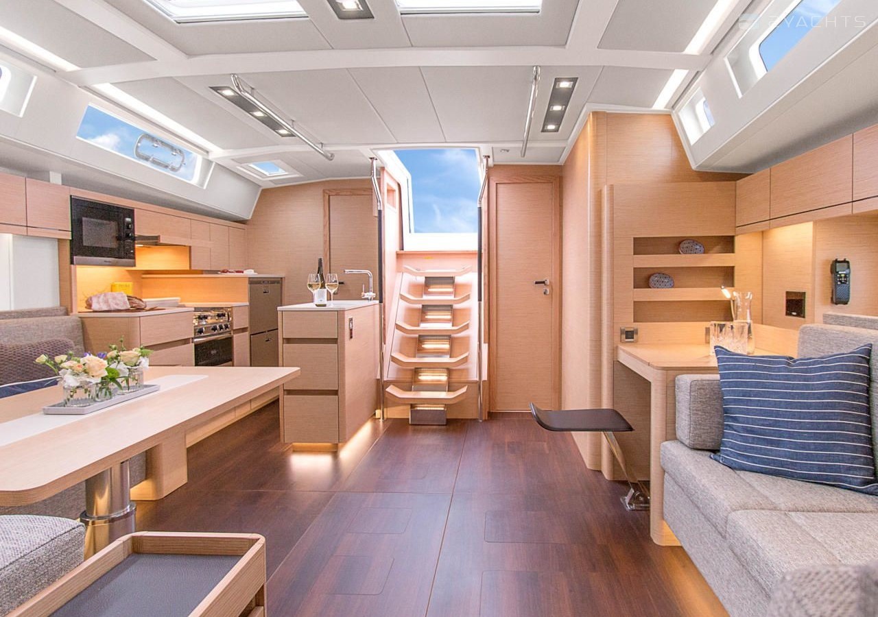 Boat equipment features rolling mainsail, electric winches, generator, bimini and bow thruster. It also boasts a heating, air conditioning, an audio system, outside speakers and inside speakers. The fully-equipped galley includes a freezer, coffee machine, oven, cooker and sink.