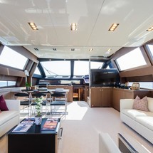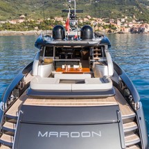 Maroon is a 26.84 m / 88′1″ luxury motor yacht. She was built by Riva in 2017. With a beam of 6.29 m and a draft of 1.82 m, she has a GRP hull and GRP superstructure. This adds up to a gross tonnage of 122 tons. She is powered by MTU engines of 2435 hp each giving her a maximum speed of 40 knots and a cruising speed of 24 knots. Maroon's maximum range is estimated at 330 nautical miles. The motor yacht can accommodate 9 guests in 4 cabins. The yacht was designed by Mauro Micheli.